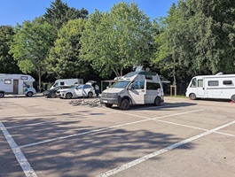 Abfahrt um 5:15 Uhr – das nenne ich urlaubseifrig. Mit ein paar Pausen und einem Zwischenstopp zum Tanken erreichten wir gegen 17 Uhr unseren ersten Stellplatz in St. Vith in Belgien, nahe der deutschen Grenze. Der Platz selbst war solide, mit V+E (Ver- und Entsorgung), aber der erste „lokale Kontakt“ entpuppte sich als skurril: Ein Hotelier, der offenbar sein Revier markierte – leider wortwörtlich. Als wir ihn freundlich auf seine Pinkeln vor den Wohnmobilen hinwiesen, reagierte er... sagen wir mal... wenig gastfreundlich. 🤷♀️
