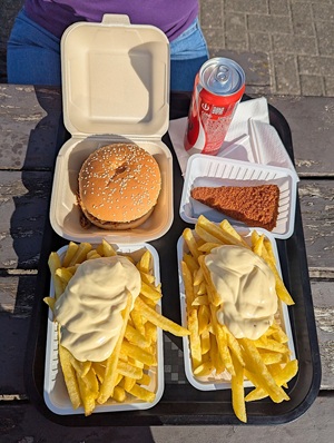 Die geplante Fritten-Pause gestaltete sich schwieriger als gedacht: Montag = Ruhetag bei vielen Imbissen. Doch unsere Hartnäckigkeit wurde belohnt – irgendwann gab’s dann doch noch die langersehnten belgischen Fritten. 🍟
