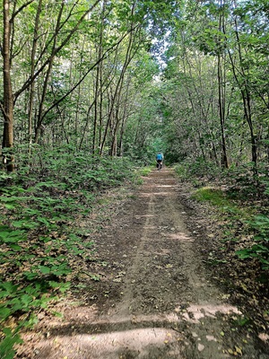 Frischer Start bei kühlen Temperaturen: Unsere kleine Radrunde am Morgen führte uns durch Wald- und Wiesenwege, die eher als Wanderwege angeschrieben waren.
