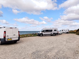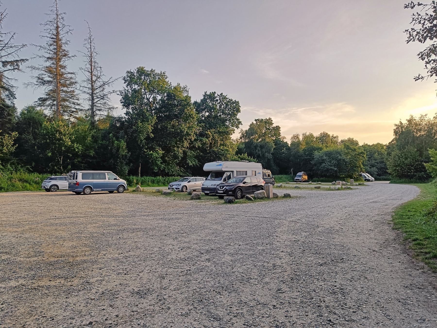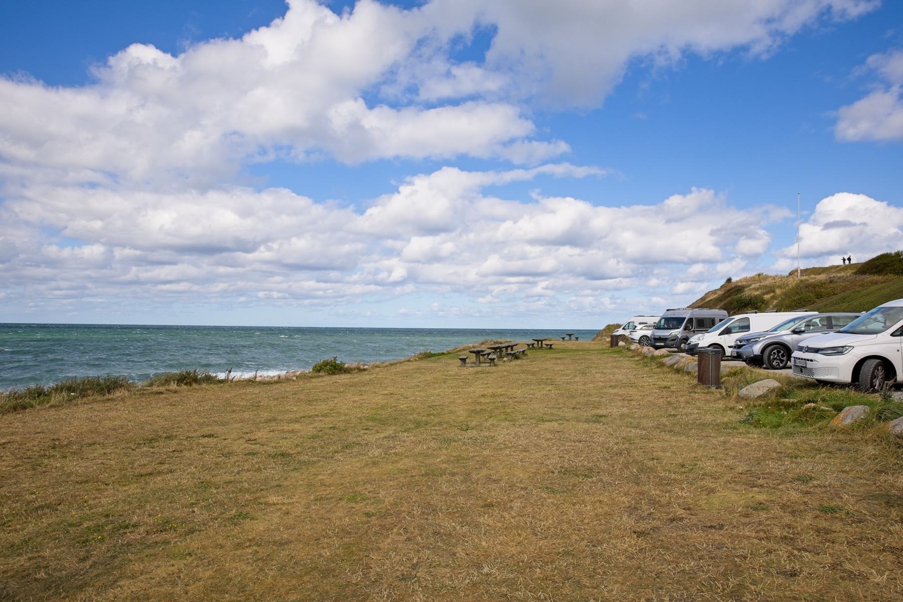 Nach einem Kaffee und einer Zimtschnecke im Wohnmobil fuhren wir nur wenige Minuten weiter zu einem Parkplatz nahe dem Meer. Wir waren nicht die einzigen dort, und im Laufe des Abends gesellten sich noch einige weitere Wohnmobile dazu.