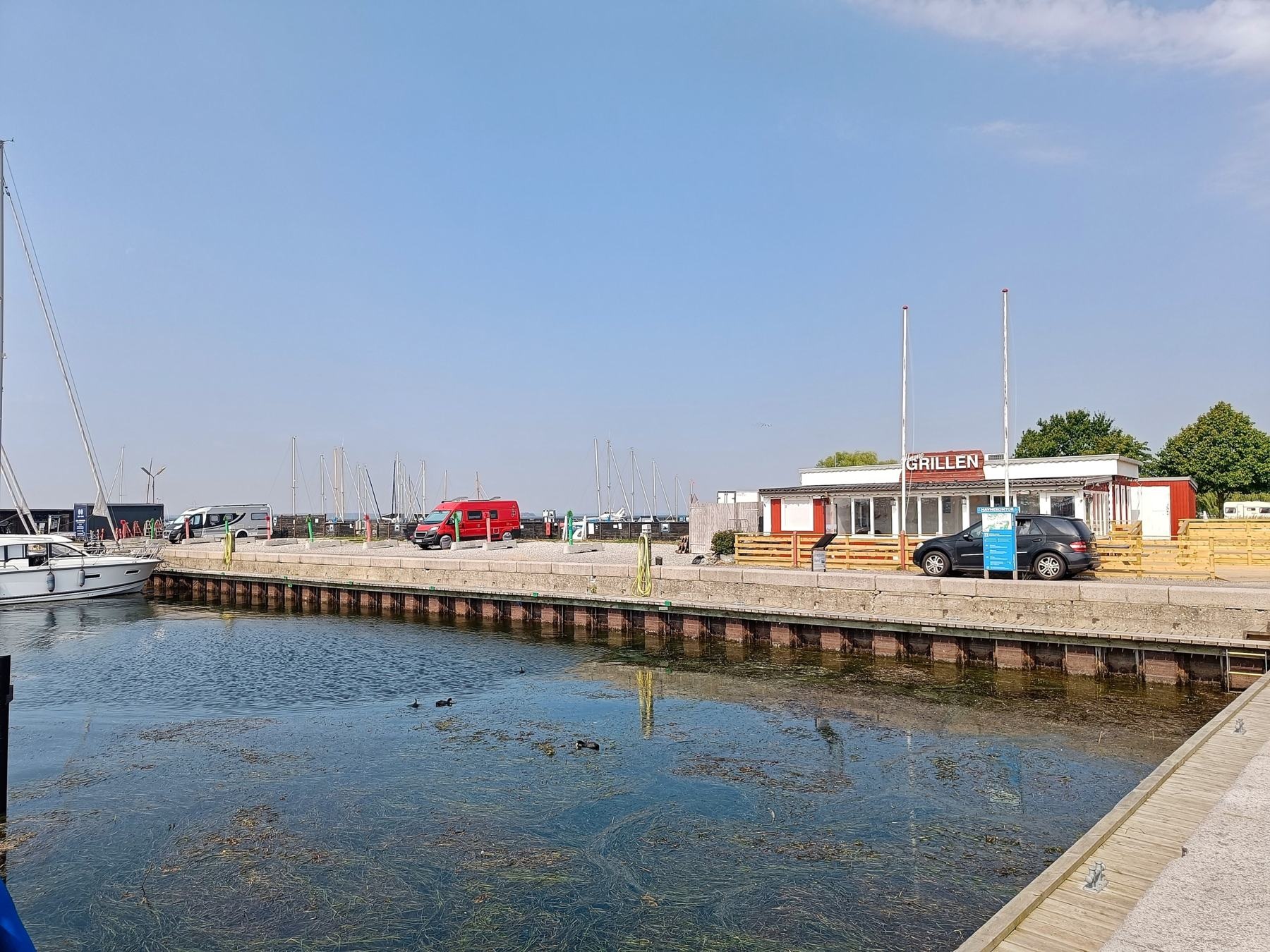 Der Morgen war windstill, wir füllten unsere Kanister am Wasserhahn beim Unterstand auf, bevor wir nur etwa 15 Minuten zum Hafenparkplatz beim Kronborg Slot in Helsingör fuhren.