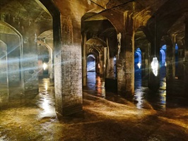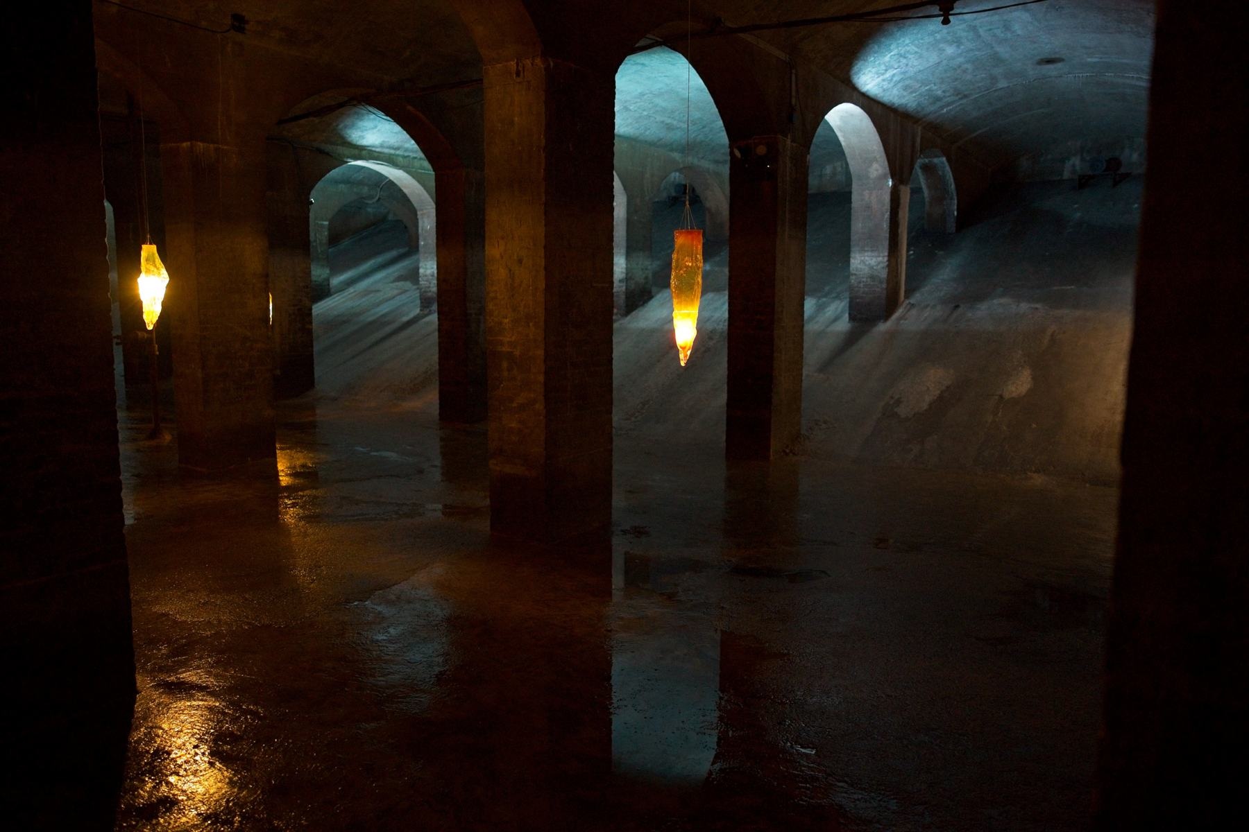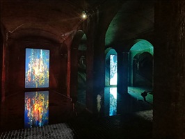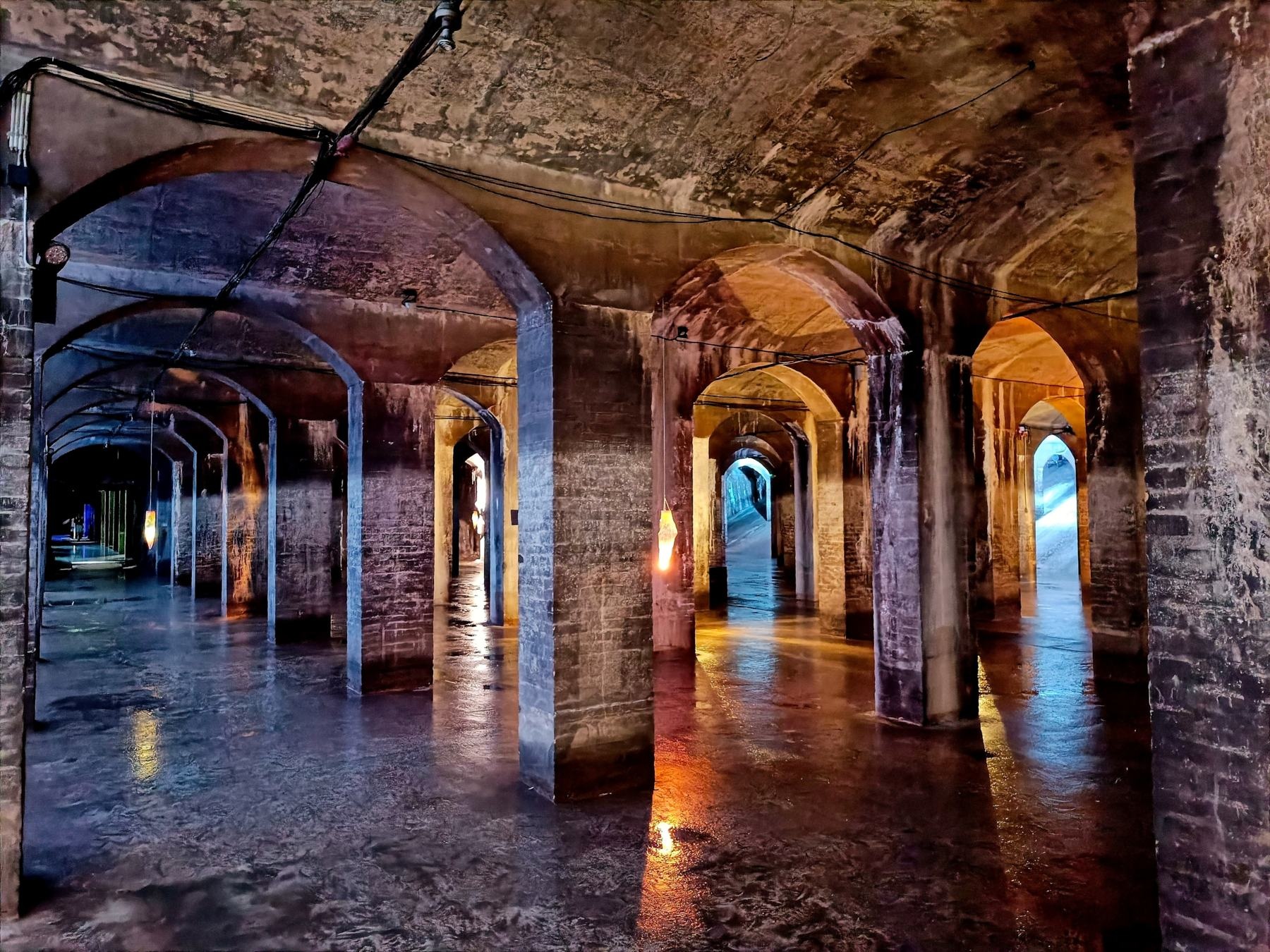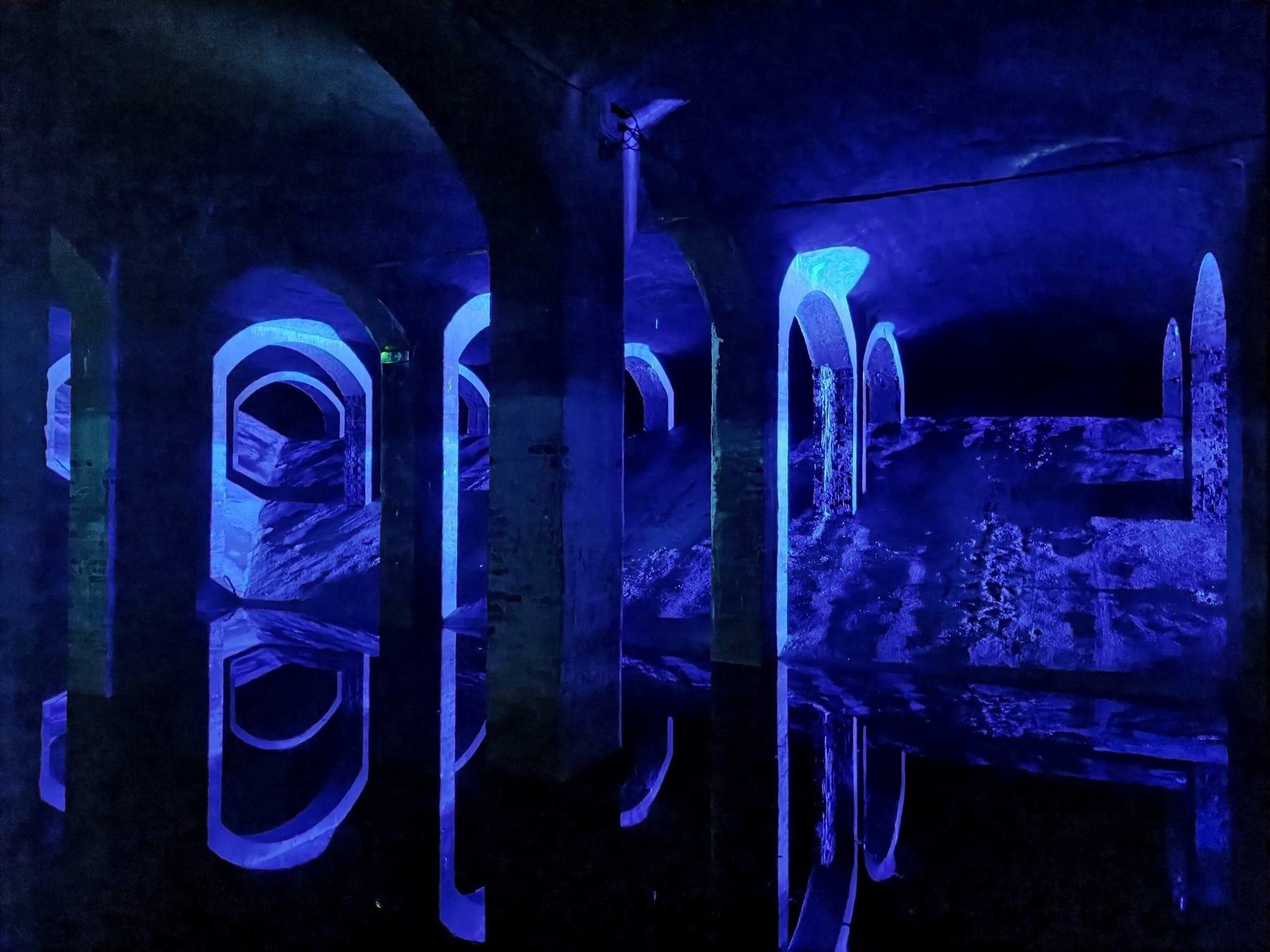 Nach einer kurzen Rast fuhren wir mit U-Bahn und Bus zurück zum Frederiksberg Slot und besuchten die Cisterne im Park – eine Untergrundausstellung mit Licht- und Musikinstallationen.