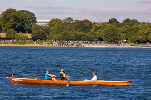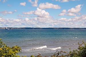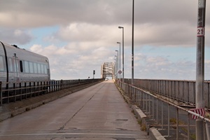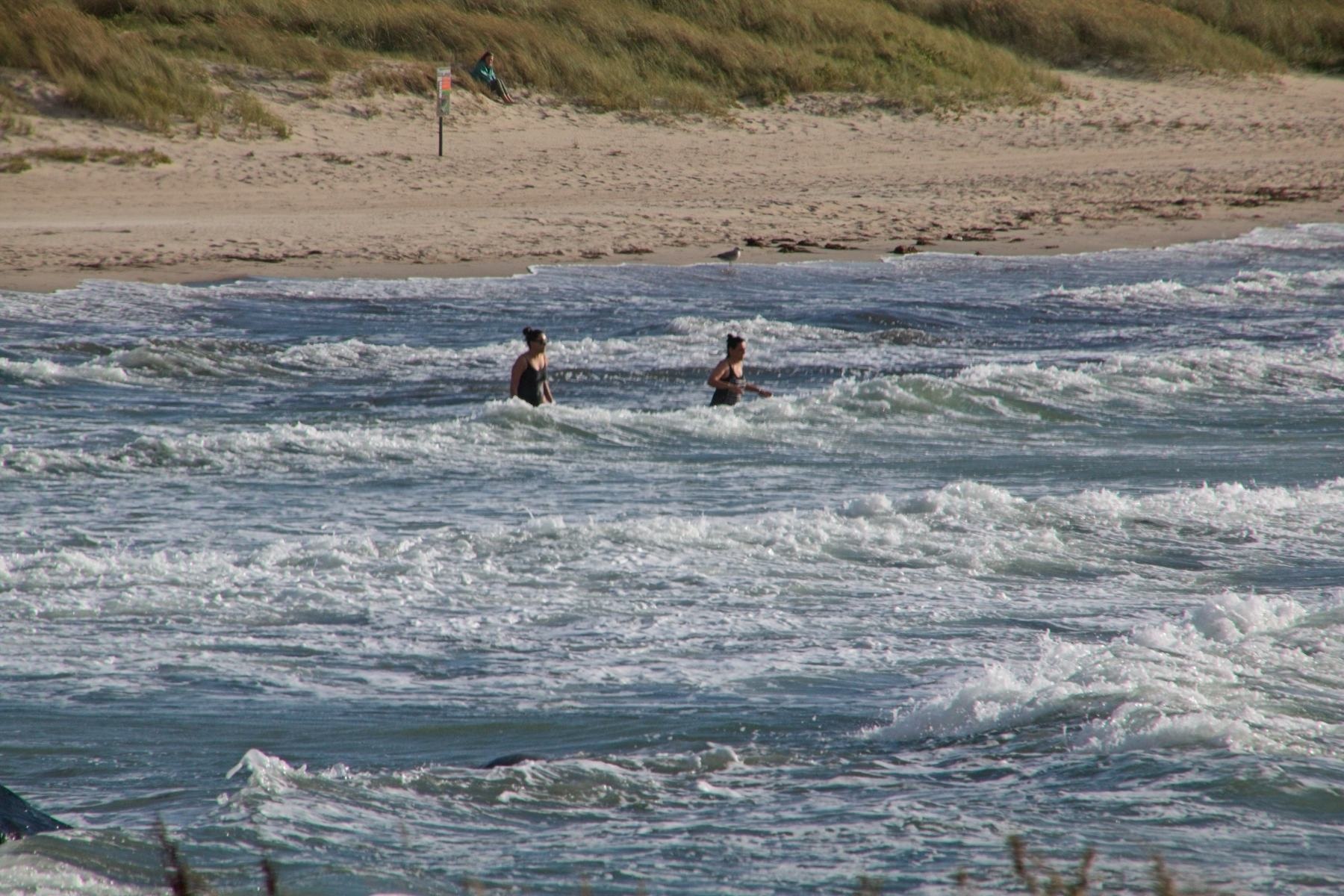 Wir stellten uns auf einem Strandparkplatz, wo der Wind extrem stark blies. Doch der Ort war so schön und es gab viel zu beobachten – Surfer, Schwimmer, die schwankende Fähre... – sodass wir beschlossen zu bleiben und die Aussicht bequem vom Wohnmobil aus zu genießen.