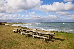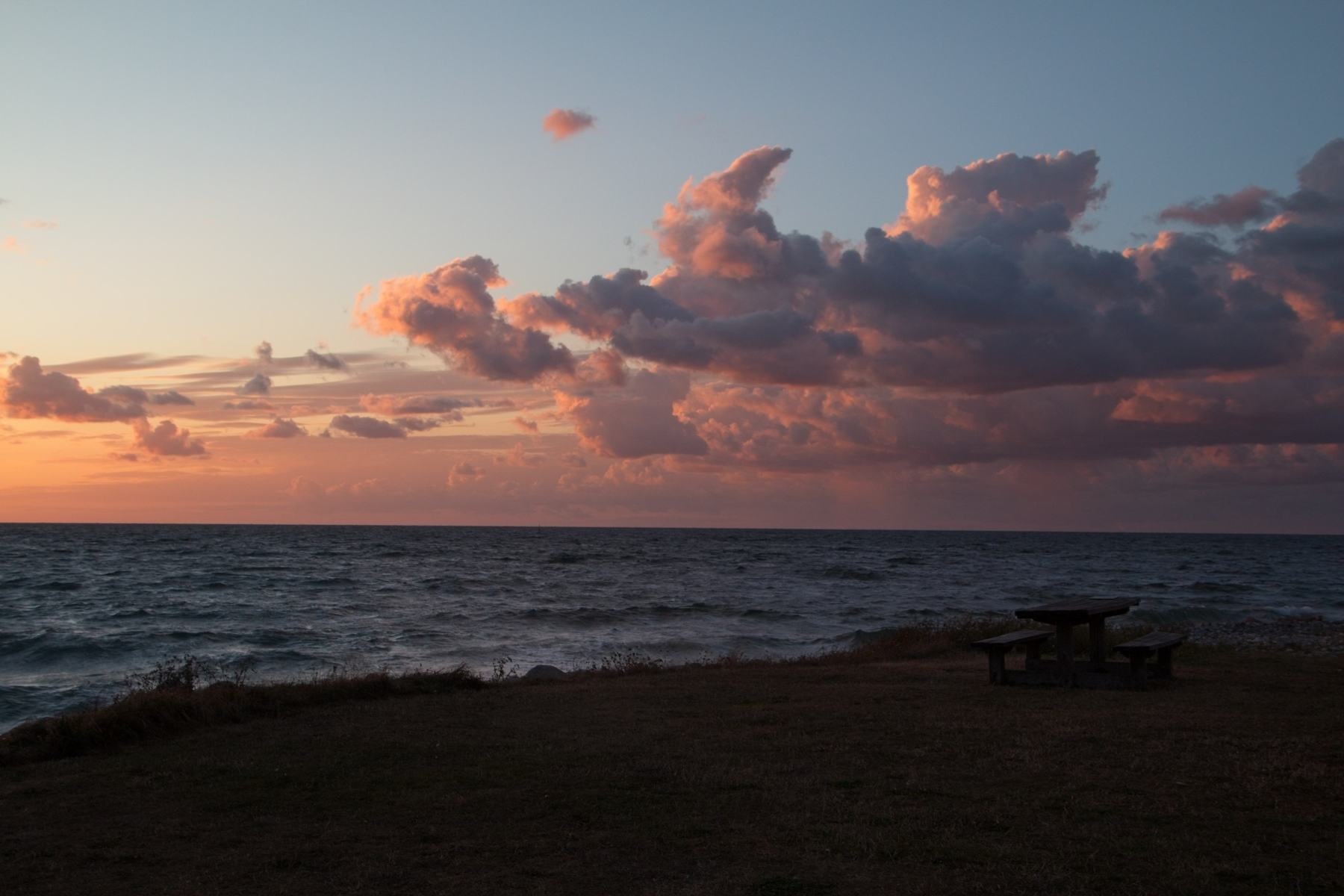 Die Fahrt zum Strandparkplatz in Hellebaek dauerte etwa 30 Minuten. Der Ort war ideal zum Schiffe beobachten, einen Blick nach Schweden zu werfen und einfach zu entspannen. Wir unterhielten uns mit einer netten Dänin, spazierten ein wenig umher, entschieden uns aber, hier nicht zu übernachten.