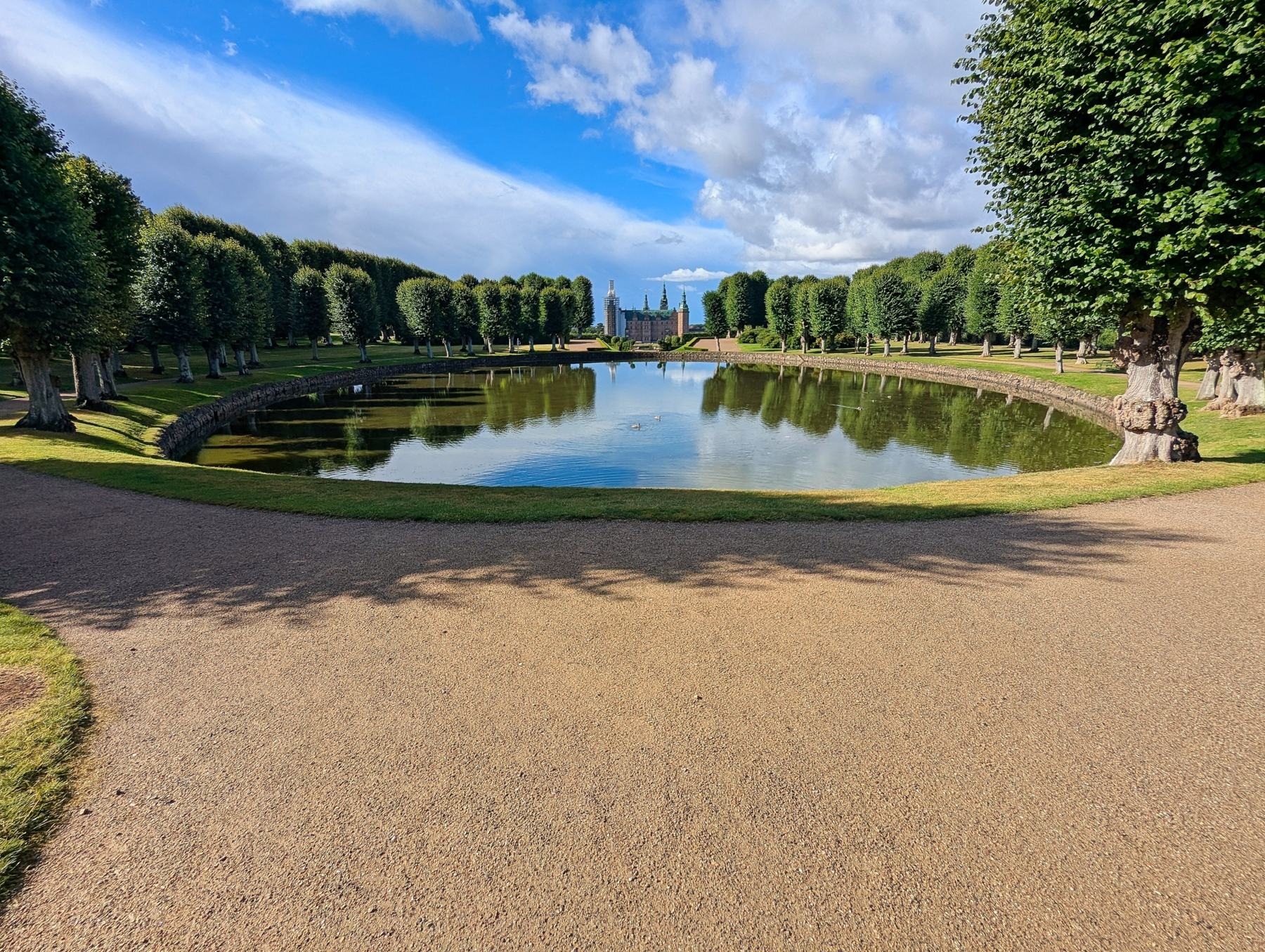 Nach etwa 45 Minuten erreichten wir den Parkplatz in Hilleröd für das Frederiksborg Slot. Wir warteten den einsetzenden Regen und ein kurzes Gewitter mit kleinen Hagelkörnern ab, bevor wir uns auf den Spaziergang durch den weitläufigen Barockgarten zum Schloss begaben.