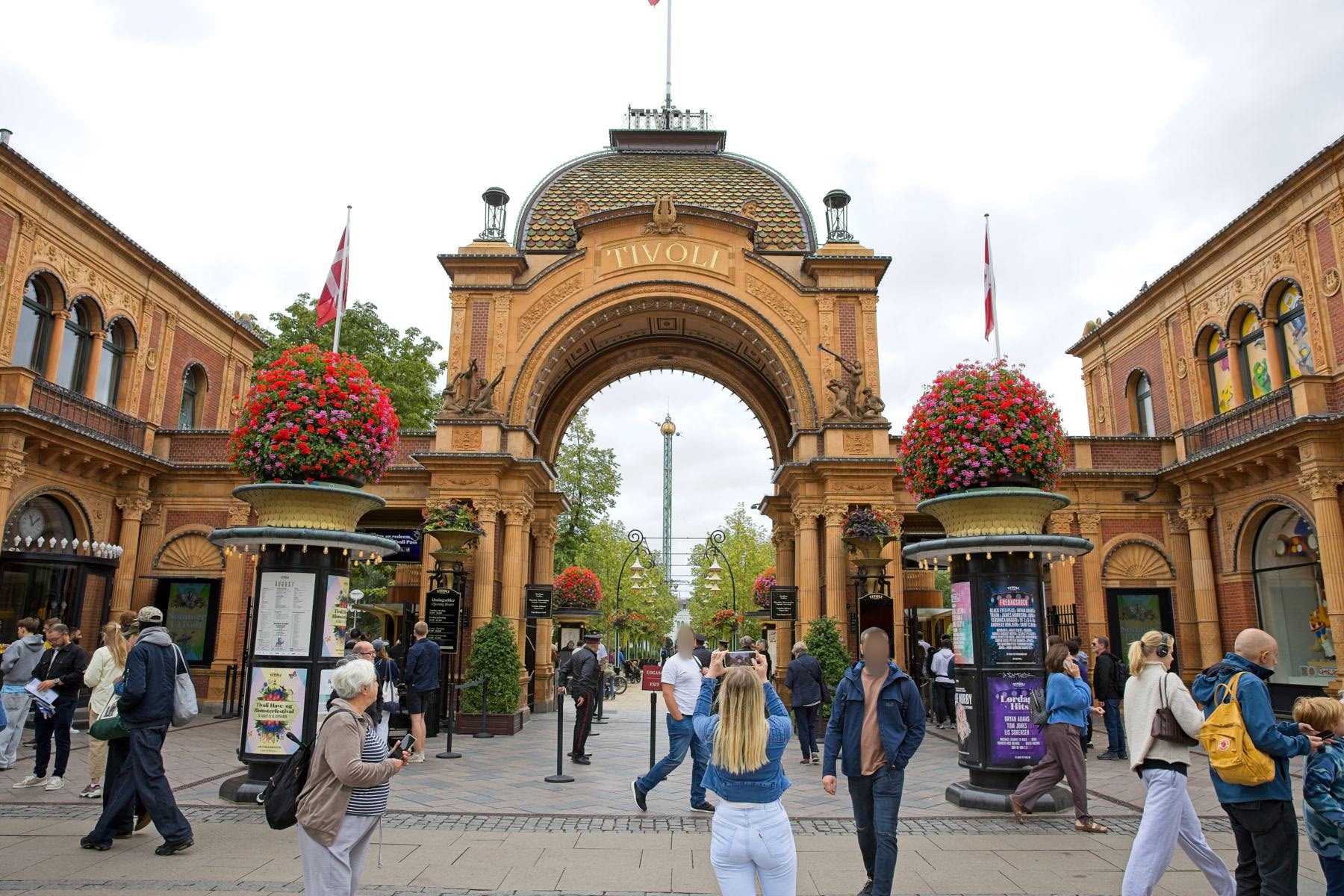 Unser erster Halt war die Nationalbibliothek. Von dort spazierten wir durch die Gassen bis zum Radhusplads, wo wir das wirklich sehenswerte und saubere WC nutzten, ehe wir zum Haupteingang des Tivoli gingen.