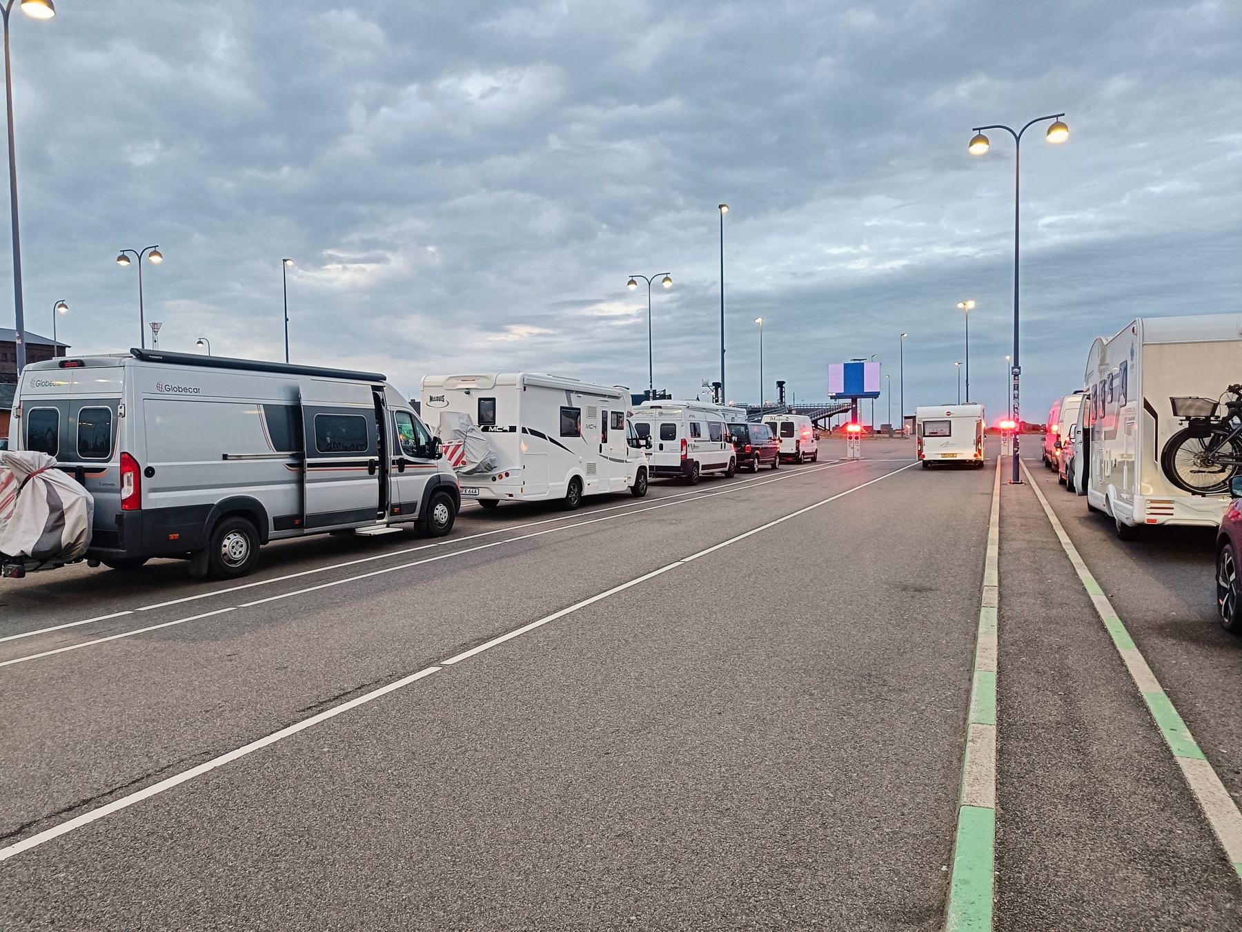 Wir mussten früh aufstehen, um die früh gebuchte Fähre zu erreichen. Und siehe da, unsere „Kuschelnachbarn“ waren ebenfalls schon wach (schade, wir wollten sie eigentlich wecken). Wir empfanden es als eine große Frechheit, sich direkt neben uns zu stellen, obwohl diese Camper wussten, dass sie früh los müssen – besonders wenn man bedenkt, dass sie die anderen dann unweigerlich aufwecken würden, falls wir länger geblieben wären.