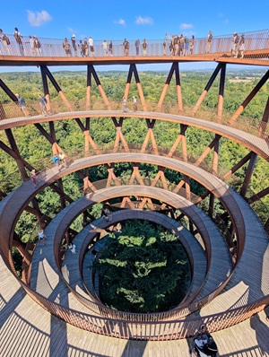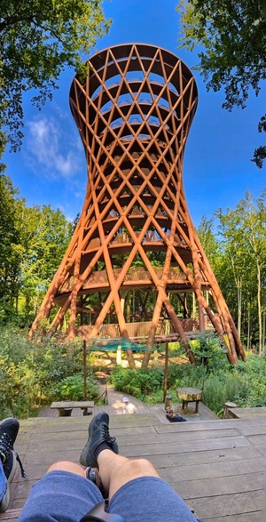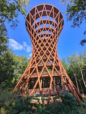 Dort bezahlt man Eintritt für einen 3,2 km langen Rundweg, der auch den beeindruckenden 45 Meter hohen Metallturm mit toller Aussicht umfasst.