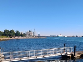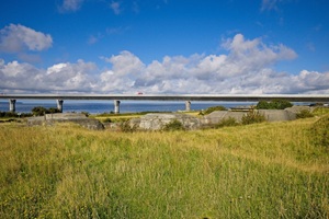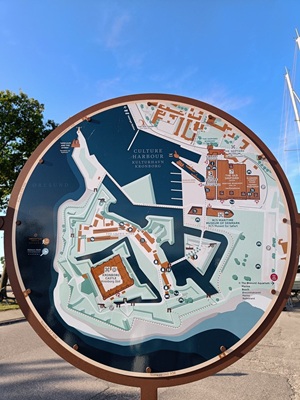 Wir fuhren vor halb 8 Uhr los, machten einen V+E-Stopp an einer Autobahnraststation und hielten dann beim Fort auf der Insel Masnedö. Dort besichtigten wir die alte Bunkeranlage, bestaunten den Neubau der Brücke und genossen einen Kaffee in der warmen Sonne.