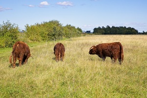 Nachmittags fuhren wir nur wenige Kilometer weiter zum Parkplatz des Naturreservats. Gleich bei unserer Ankunft sahen wir zwei Seeadler kreisen. Der Wind ließ nach und eine Kuhherde kam in die Nähe.