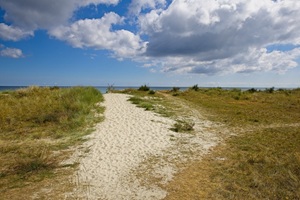 Wir wachten früh auf und machten einen Morgenspaziergang zum Vogelbeobachtungsturm. Anschließend hängten wir noch eine kleine Runde durch den Wald an, doch außer frischen Hufspuren konnten wir keine Pferde entdecken. Dafür war wirklich alles mit Spinnweben überzogen. Danach besuchten wir erneut den Strand, bevor wir am späten Vormittag unsere Fahrt fortsetzten.