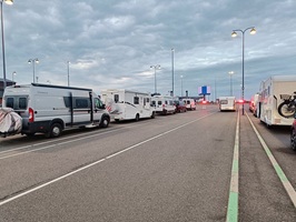 Andere Camper – wohlgemerkt auf einem Parkplatz – verwandelten diesen in einen Campingplatz: Markise ausfahren, Sessel und Tisch heraus... Kein Wunder, dass wir Camper immer weniger gern gesehen sind und immer mehr Plätze für uns gesperrt werden.