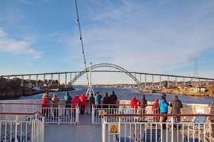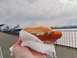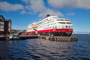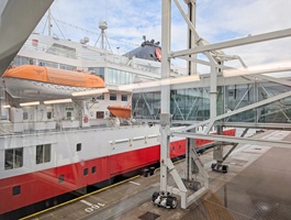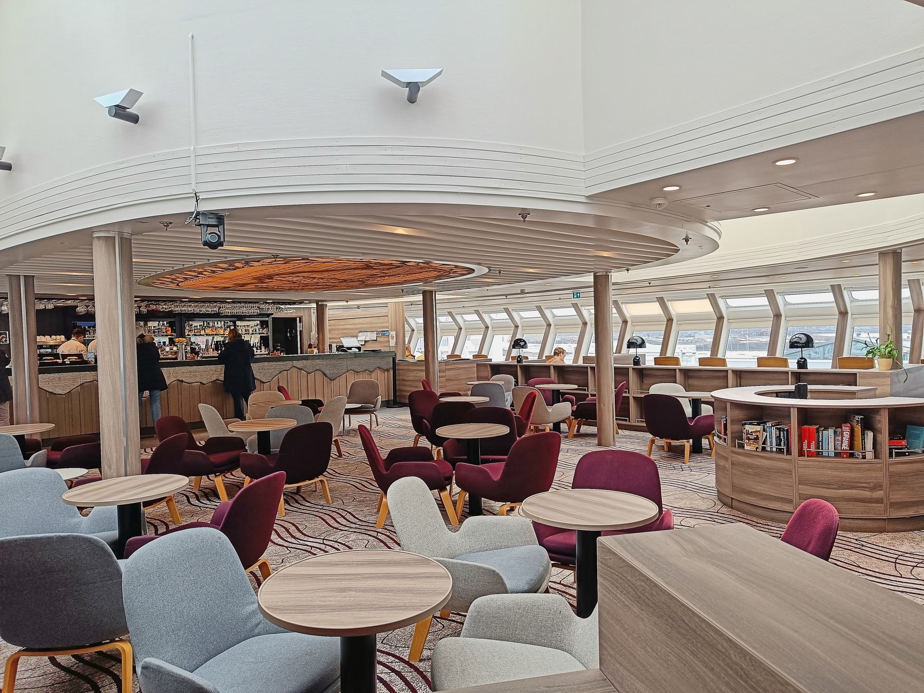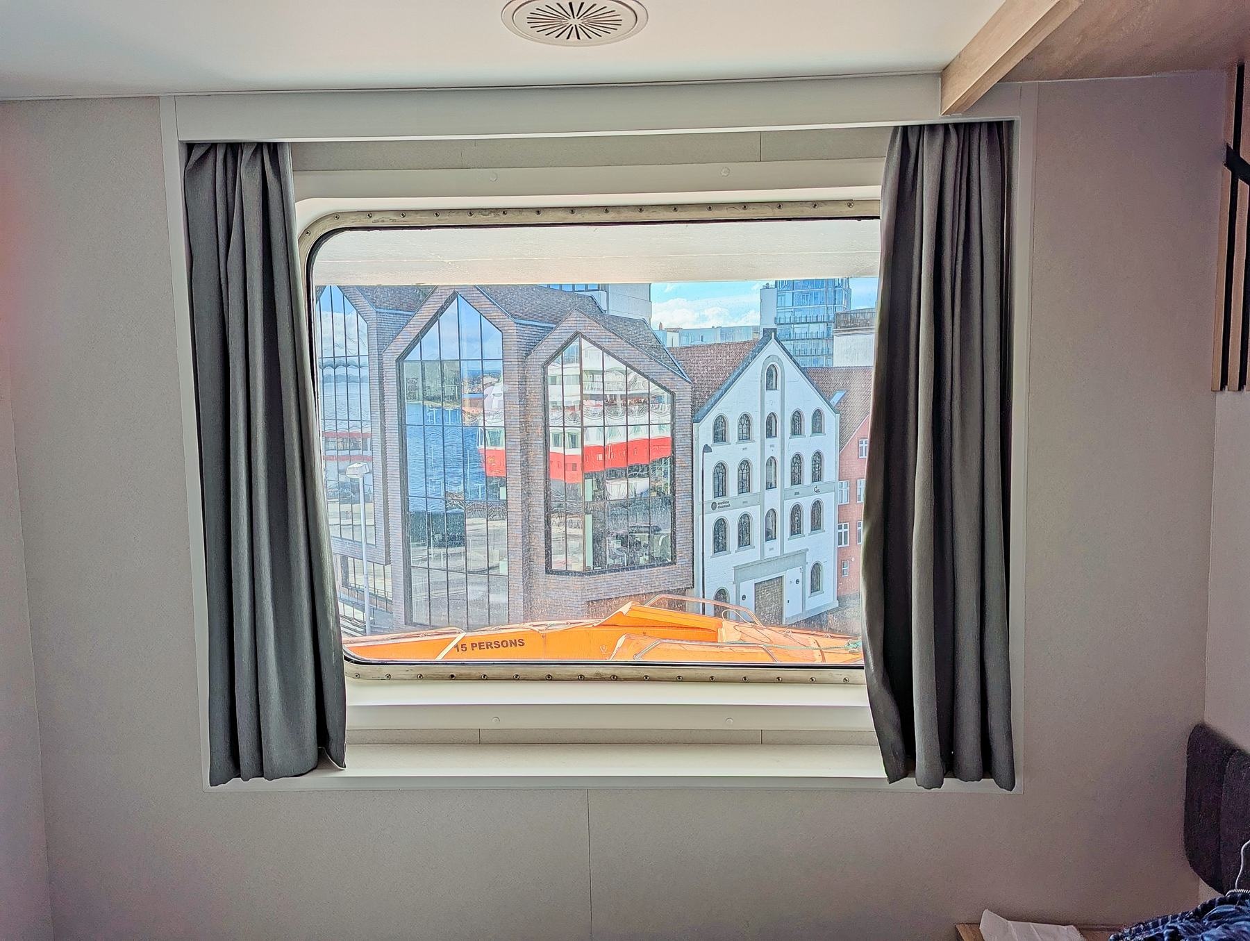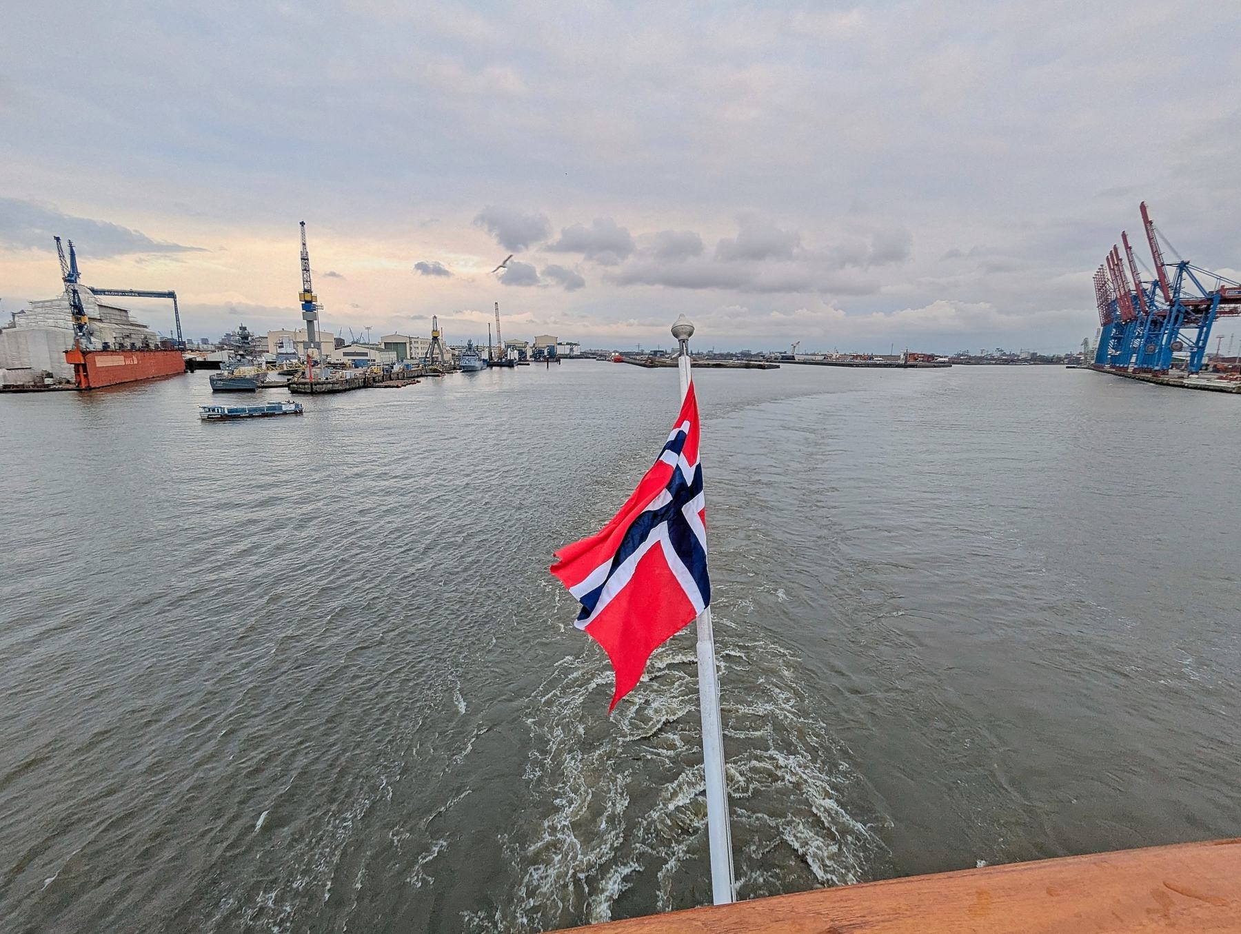 Unser Abenteuer „Hurtigruten: Hamburg – Nordkap – Hamburg“ mit der Otto Sverdrup (kurz nach unserer Reise wieder rückumbenannt in MS Finnmarken) begann mit einem frühen Flug nach Hamburg. Vom Flughafen ging es mit den öffentlichen Verkehrsmitteln zu den Landungsbrücken, wo wir in aller Ruhe einen Kaffee genossen und ein wenig spazierten. Danach war es Zeit für ein leckeres Backfischbrötchen, bevor wir ein Taxi zum Cruise Center Steinwerder nahmen. Dort checkten wir bei den Hurtigruten ein und durchliefen die Sicherheitskontrolle. Da unser Kabine noch nicht fertig war, verbrachten wir die Zeit an der Bar / Explorer Lounge, wo wir den ersten Kaffee und die Aussicht auf Hamburg genossen. Ein gelungener Auftakt! Nach einer Sicherheitseinweisung und Vorstellung des Expeditionsteams legten wir pünktlich in Hamburg ab, bekamen ein phantastisches erstes Abendbuffet und schauten uns schon das Schiff an.