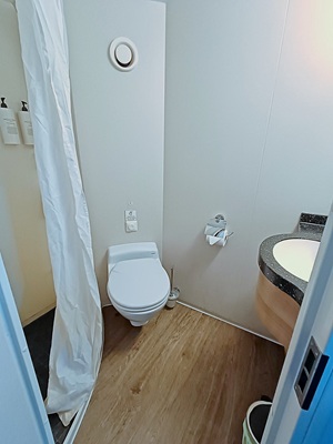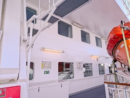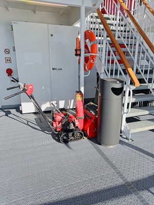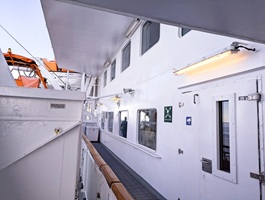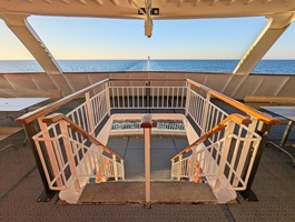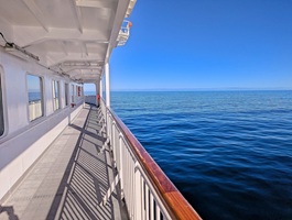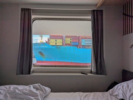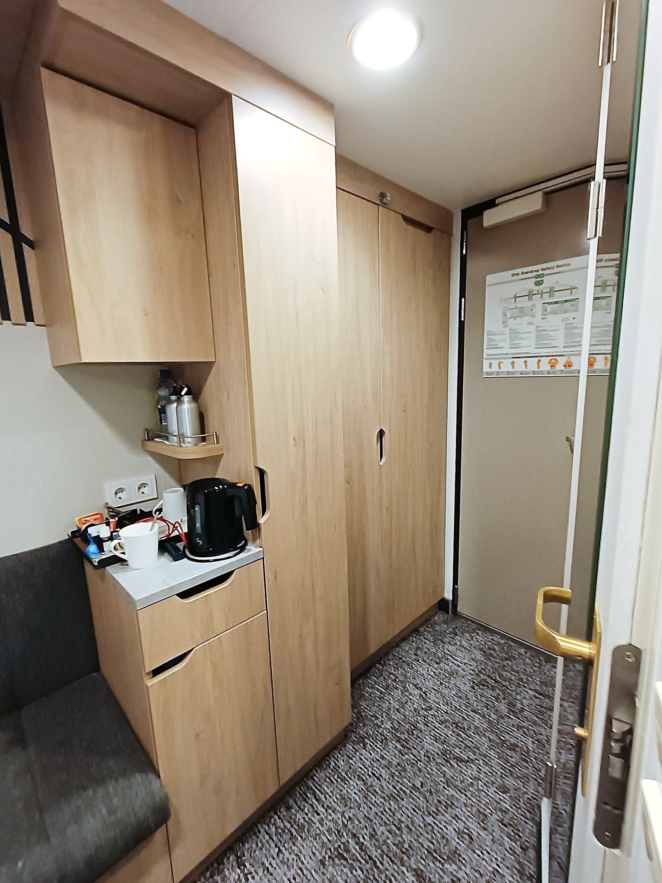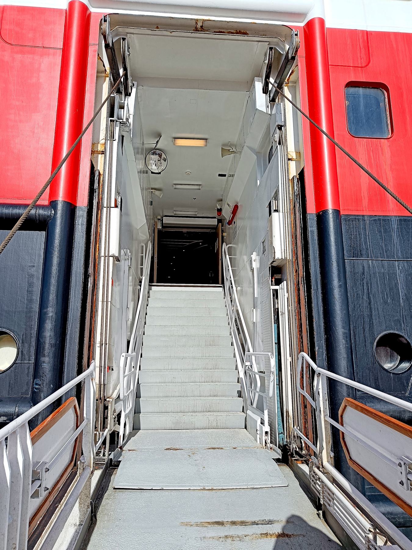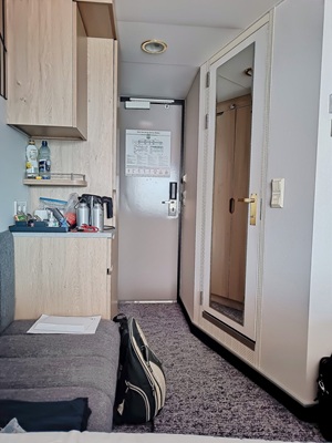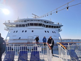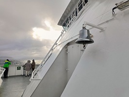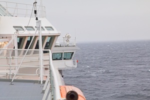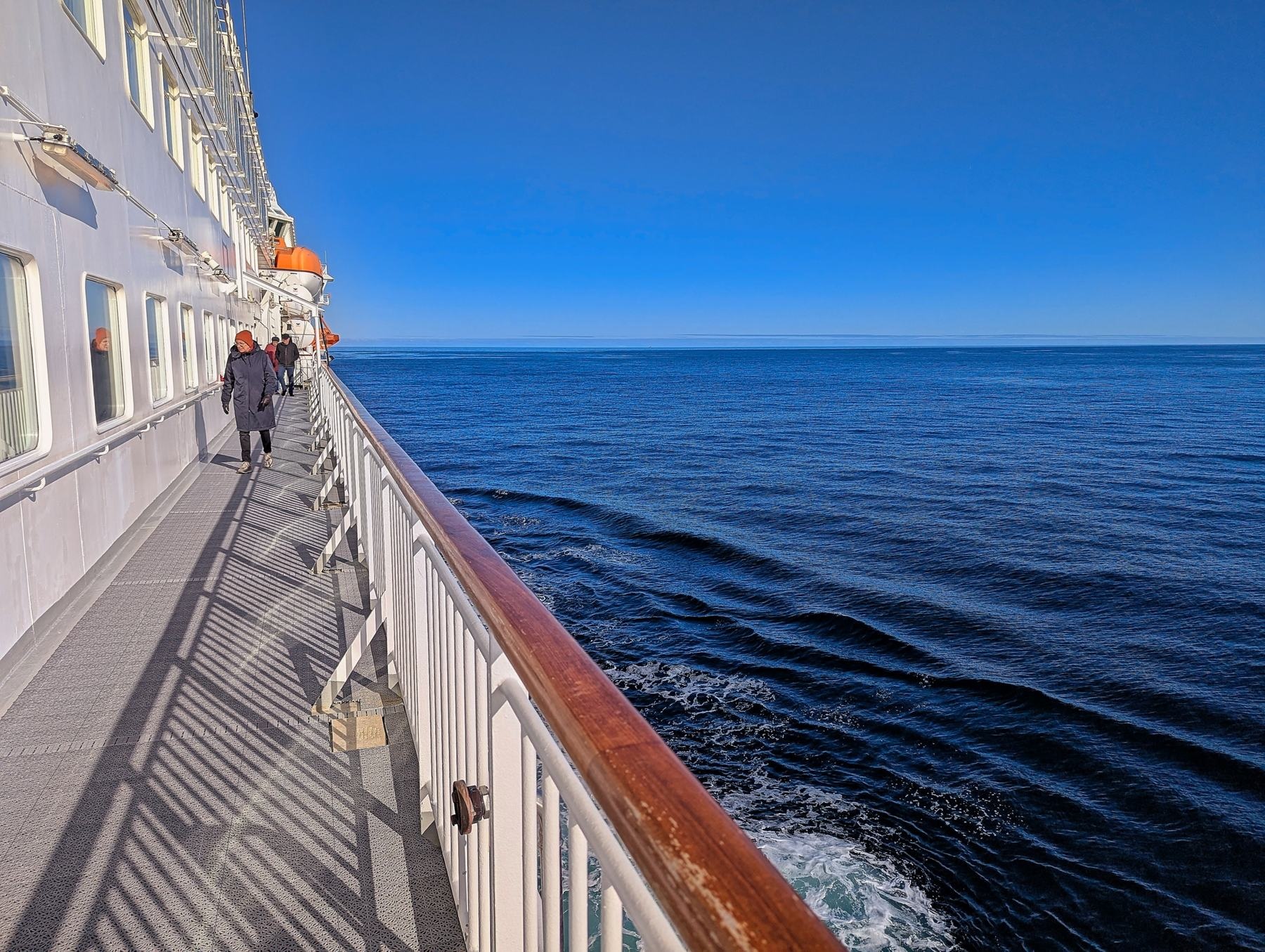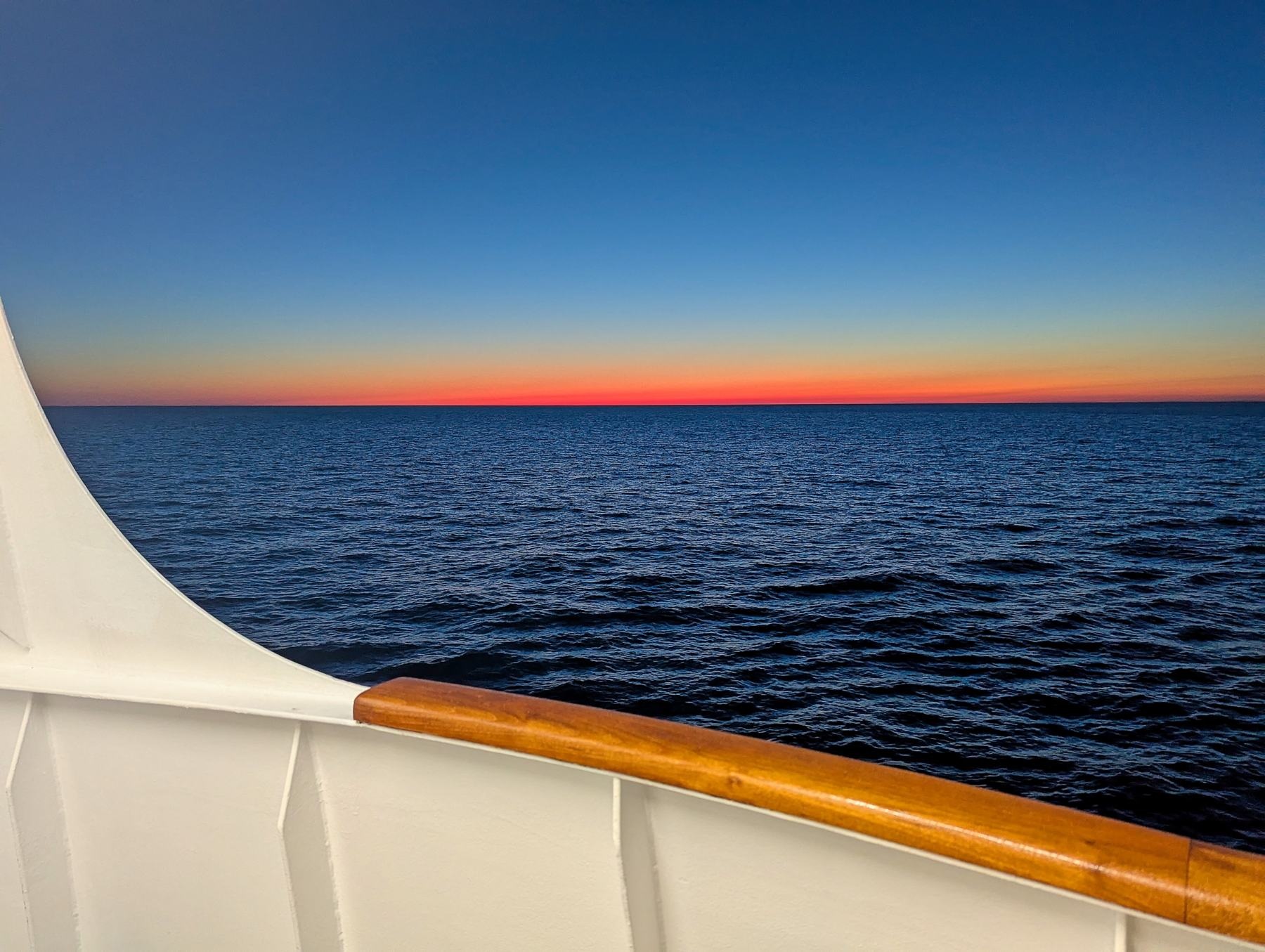 Trotz der ruhigen See hatte Andrea am Nachmittag mit leichtem Seekrankheitsgefühl zu kämpfen und griff neben den Seabands auf Seekrankheits-Pulver zurück. Ein kleiner Zwischenfall: Ab Mittag gab es kein Trinkwasser aus der Leitung, wobei wir ohnehin nicht aus der Leitung tranken, sondern unsere erhaltenen Aluflaschen beim Wasserautomaten (extra aufbereitetes Wasser) welche überall am Schiff zu finden sind, auffüllten.