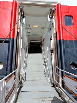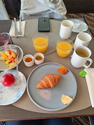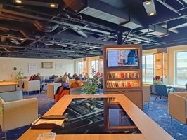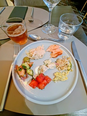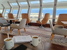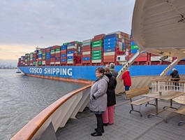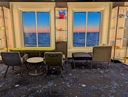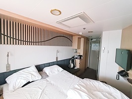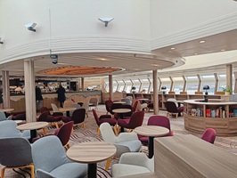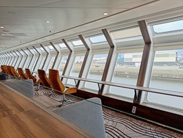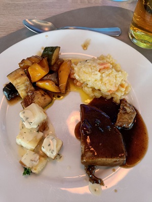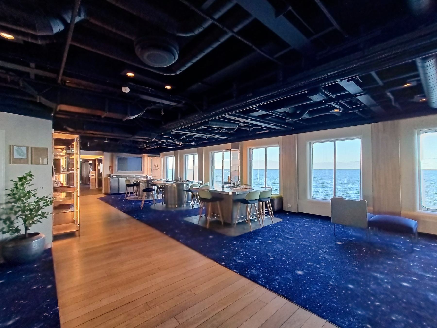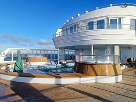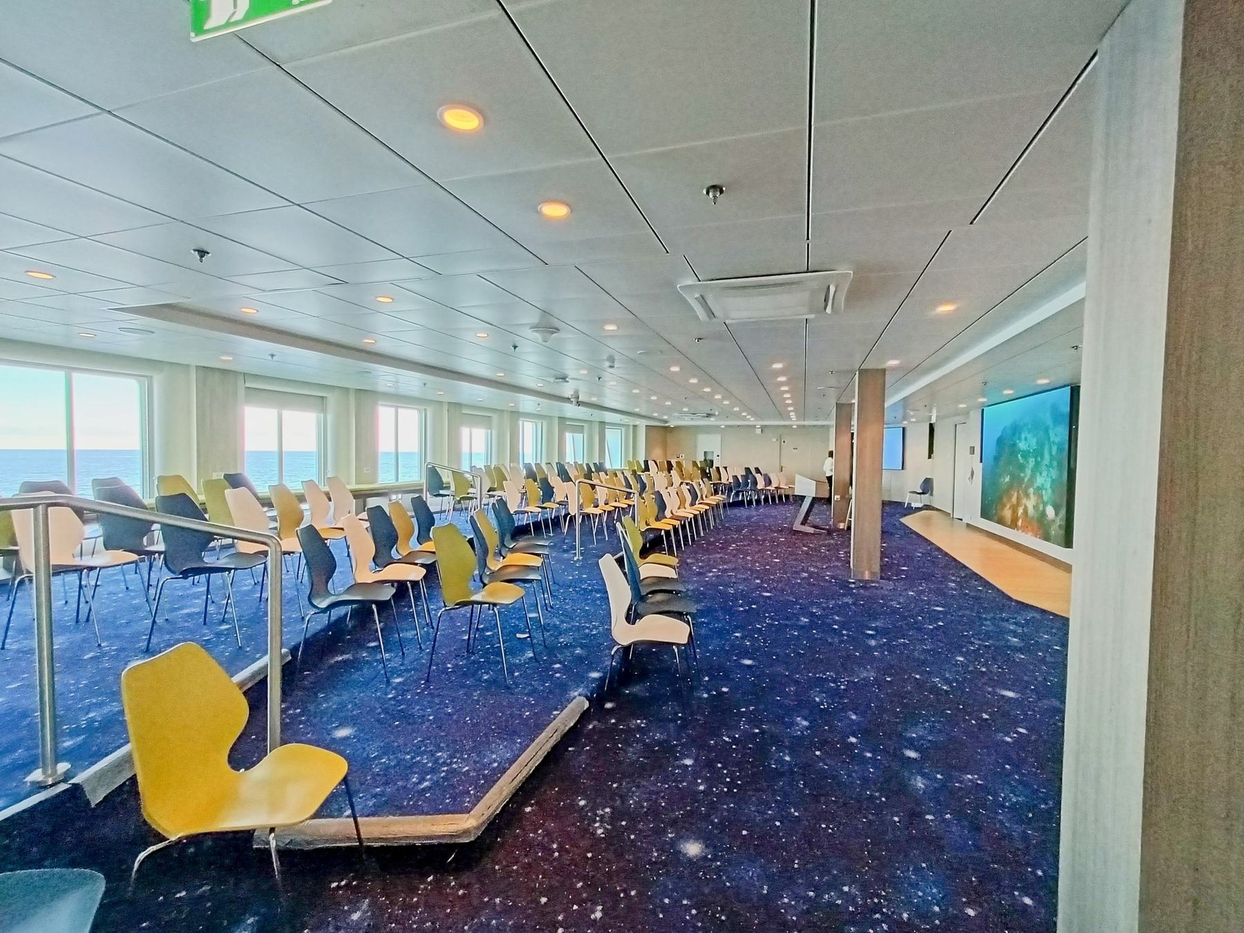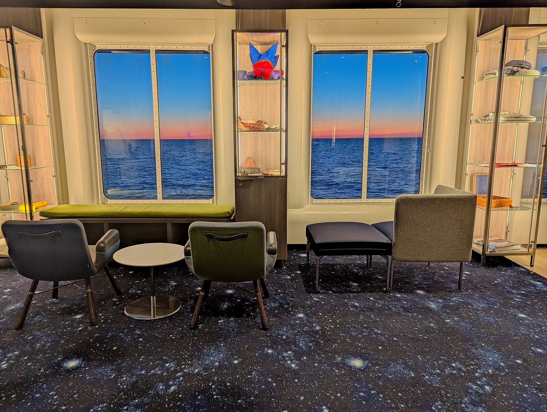 Die Nacht war nicht gerade erholsam. Ab etwa 4 Uhr konnte ich kaum schlafen. Wir holten uns gegen 6 Uhr einen ersten Kaffee und nach einem kurzen Besuch im Fitnessraum, war eine Dusche und ein entspannender Whirlpool genau das Richtige. Nach einem ausgiebigen Frühstück durchstöberten wir das Aktivitätsprogramm und gingen dann zwei Runden um das Deck. Es gab einen Vortrag, der auch im Schiffs-TV übertragen wurde, der uns interessante Einblicke verschaffte. Am Nachmittag sahen wir uns noch ein weiteres Programm an und später am Abend gab es eine willkommene Gelegenheit, den Kapitän und die Crew kennenzulernen. Der Küchenchef stammte übrigens aus Österreich.