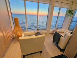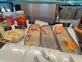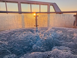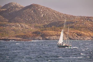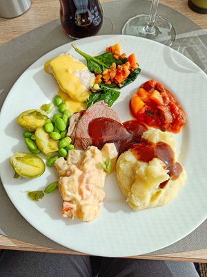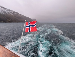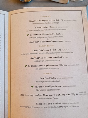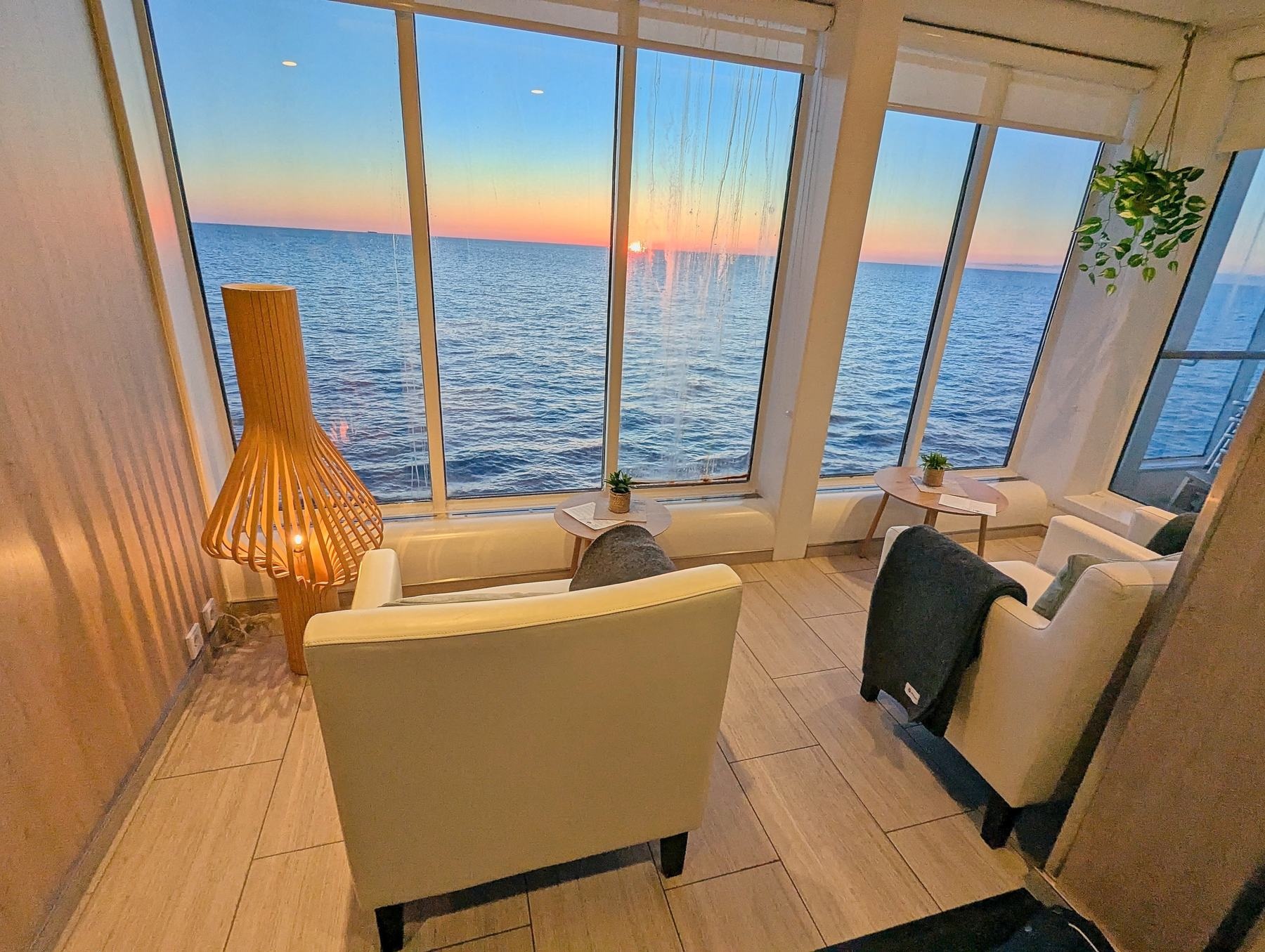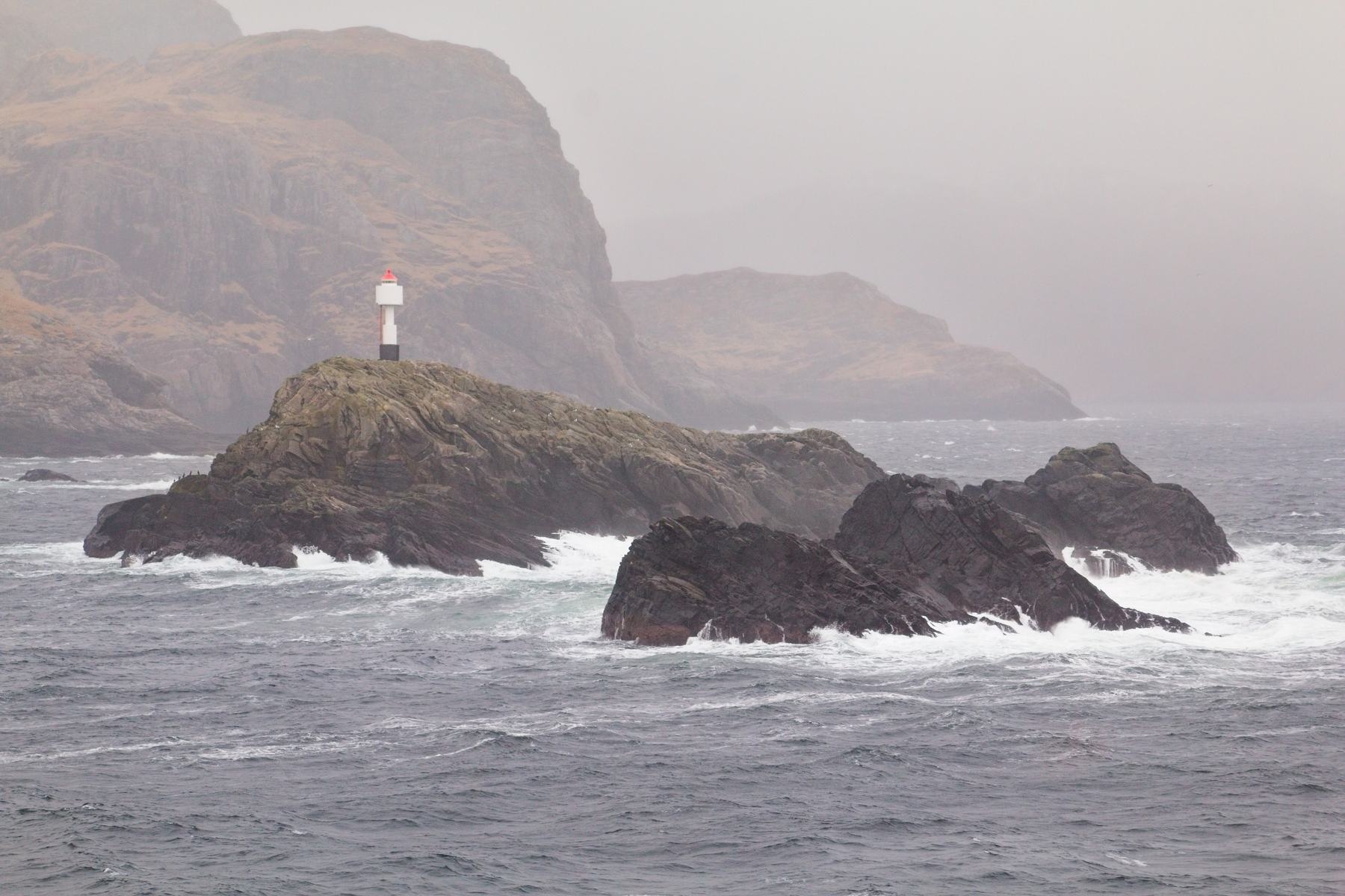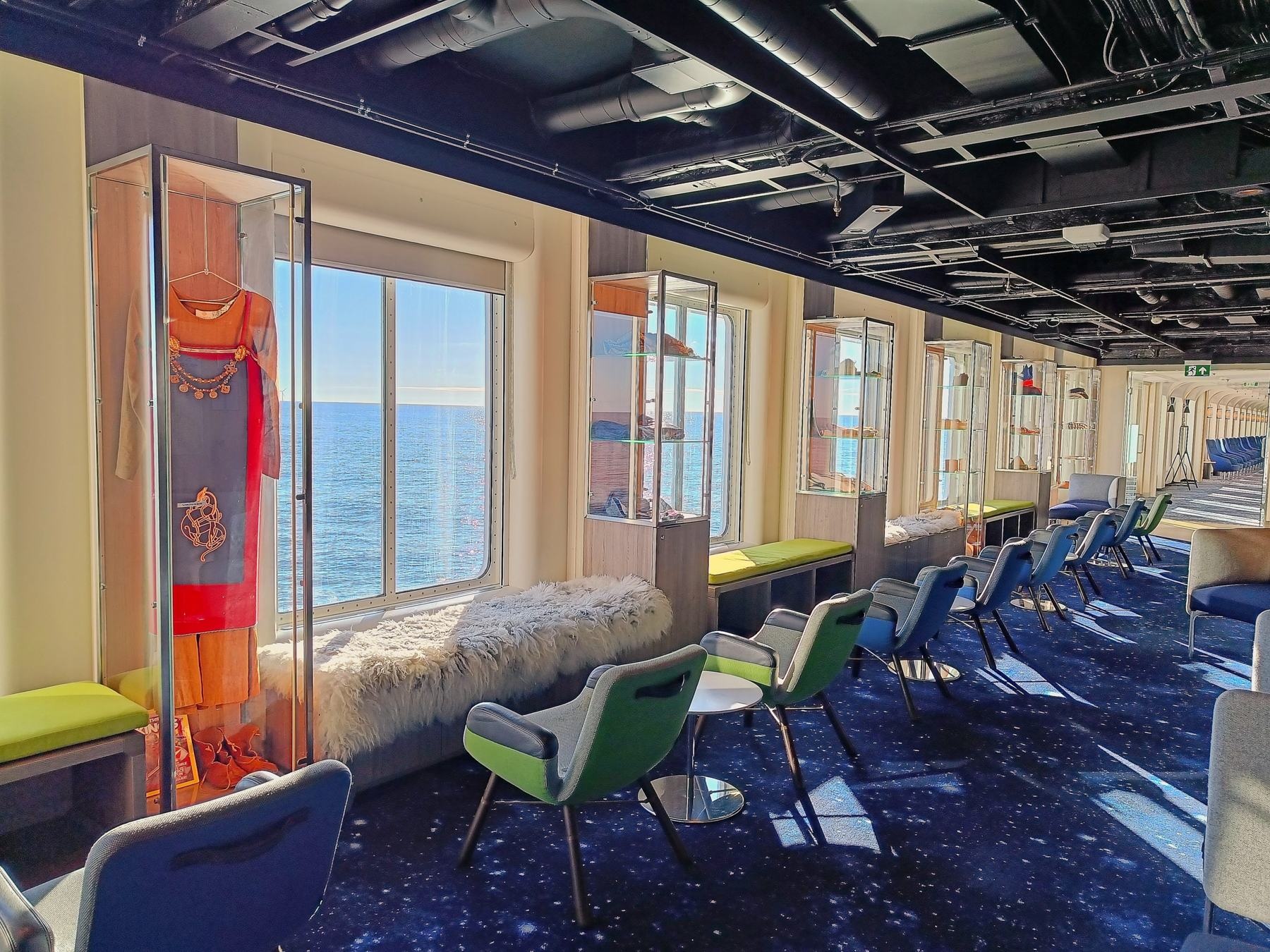 An diesem Tag war ein Seetag angesagt. Früh aufgestanden, Pulver gegen die Seekrankheit eingenommen, und dann ein entspannendes Sauna-Erlebnis bei angenehmen 63 Grad (Aufheizphase, für uns gerade recht). Später genossen wir ein spätes Frühstück. Bis zum Mittag wurden die Wellen ordentlich hoch, aber danach kam die Sonne heraus. Beim Blick auf Torghatten, einem markanten Berg mit einem Loch in der Mitte, konnten wir sogar eine Orca-Flosse erspähen. Am Nachmittag kam wieder starker Wind und Regen auf.