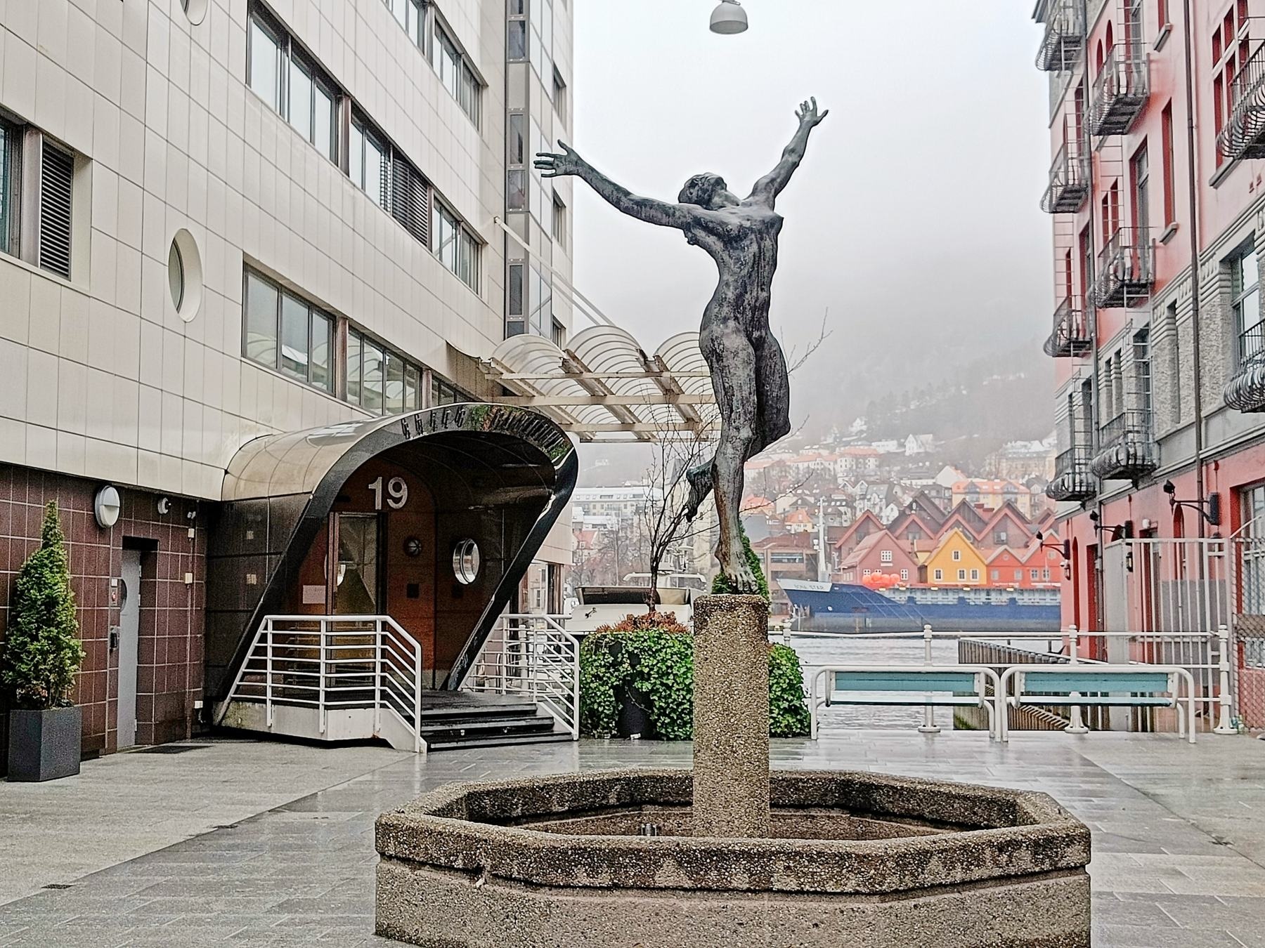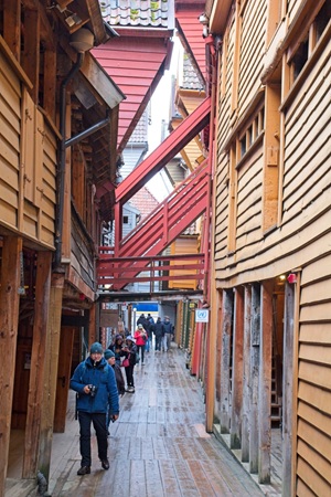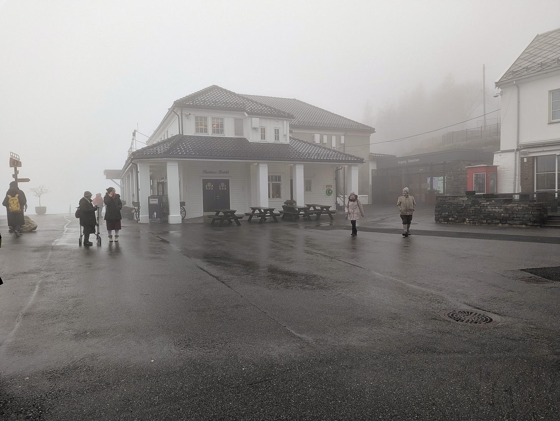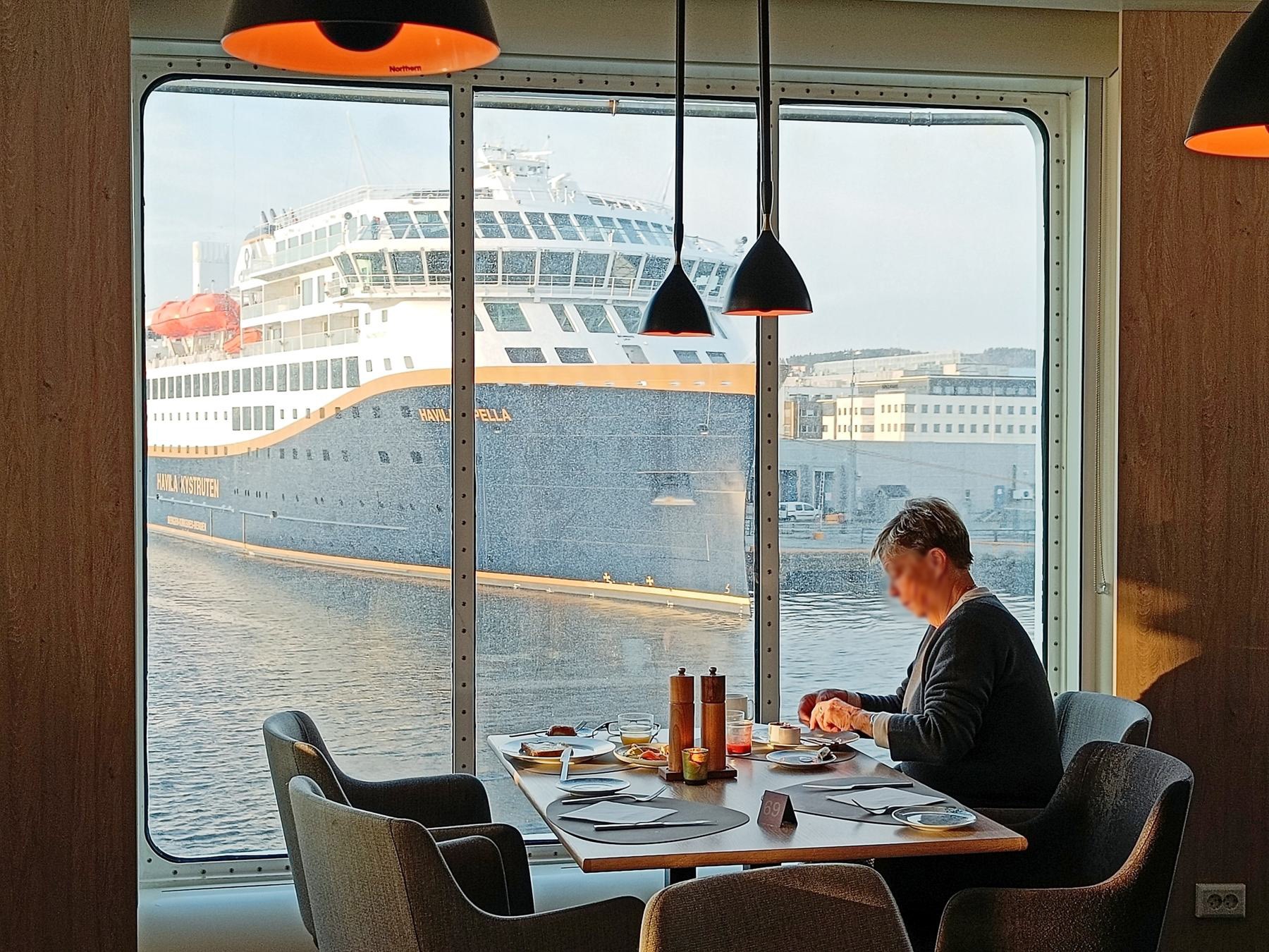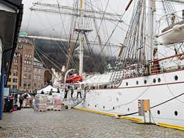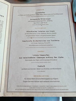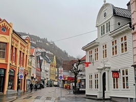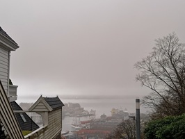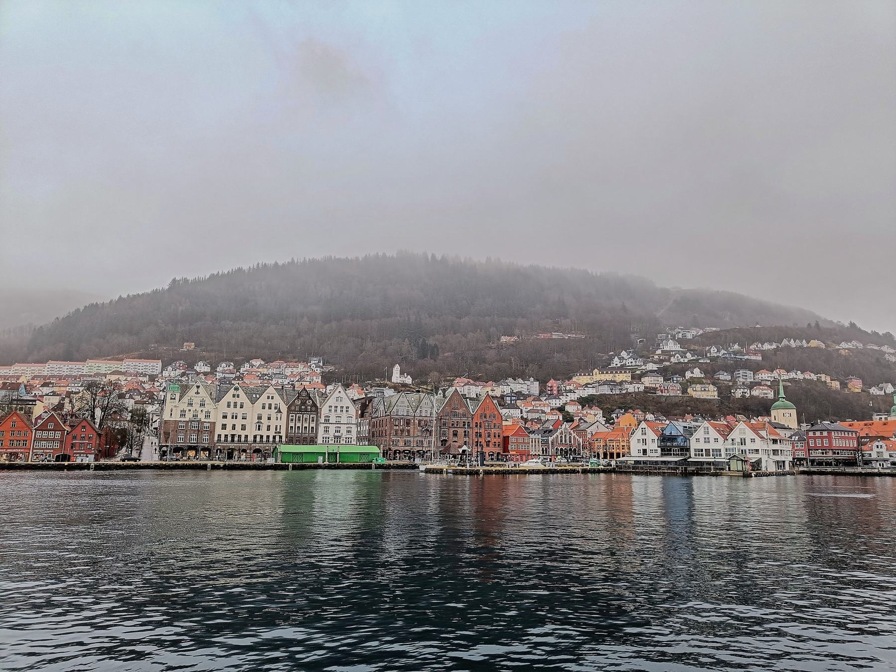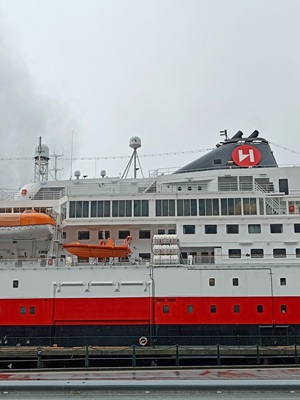 In Bergen angekommen, machten wir uns früh auf den Weg, um die Stadt zu erkunden. Die Floyenbahn brachte uns auf den Berg, aber der Nebel raubte uns die Aussicht. Beim Spaziergang durch die Speicherhäuser und das Stadtzentrum war das Wetter leicht regnerisch, was aber keine große Rolle spielte. Da wir schon mehrmals auf die defekte Kabinenlüftung hingewiesen hatten und wir nicht die einzigen waren, wurde das Problem nach der Ausfahrt von Bergen endlich behoben. Auch die gute Kaffeemaschine funktionierte wieder.