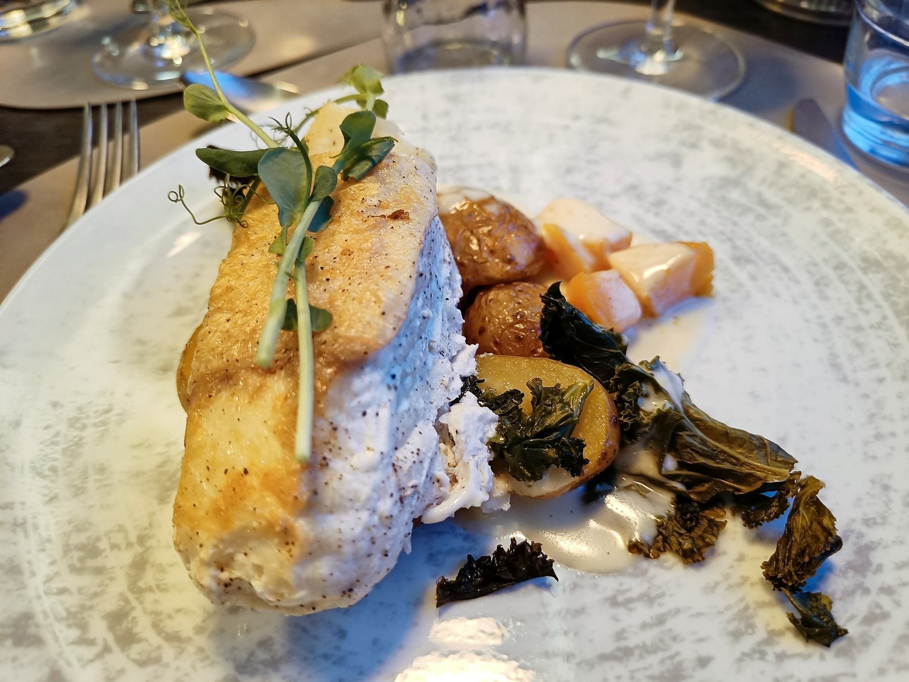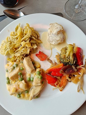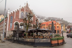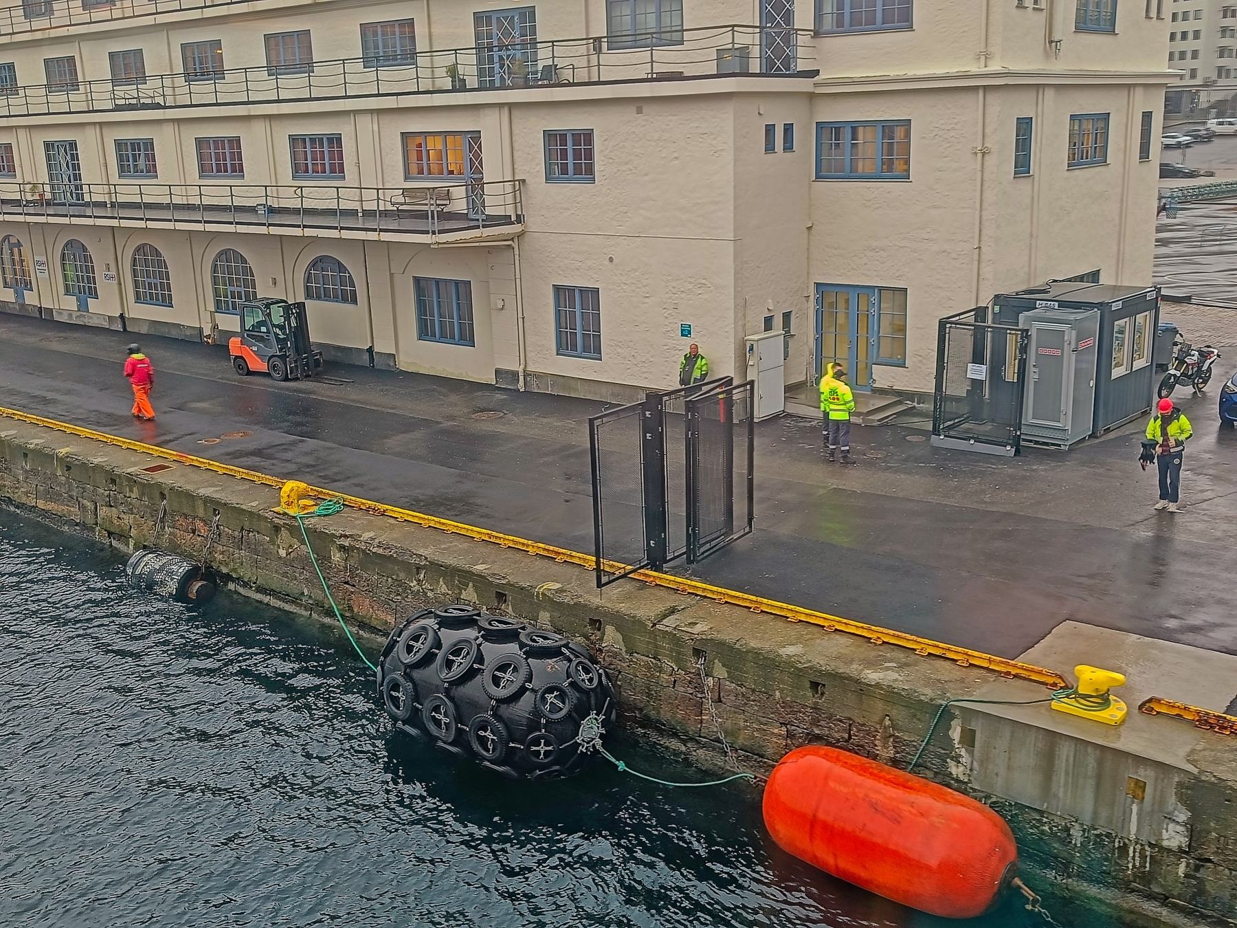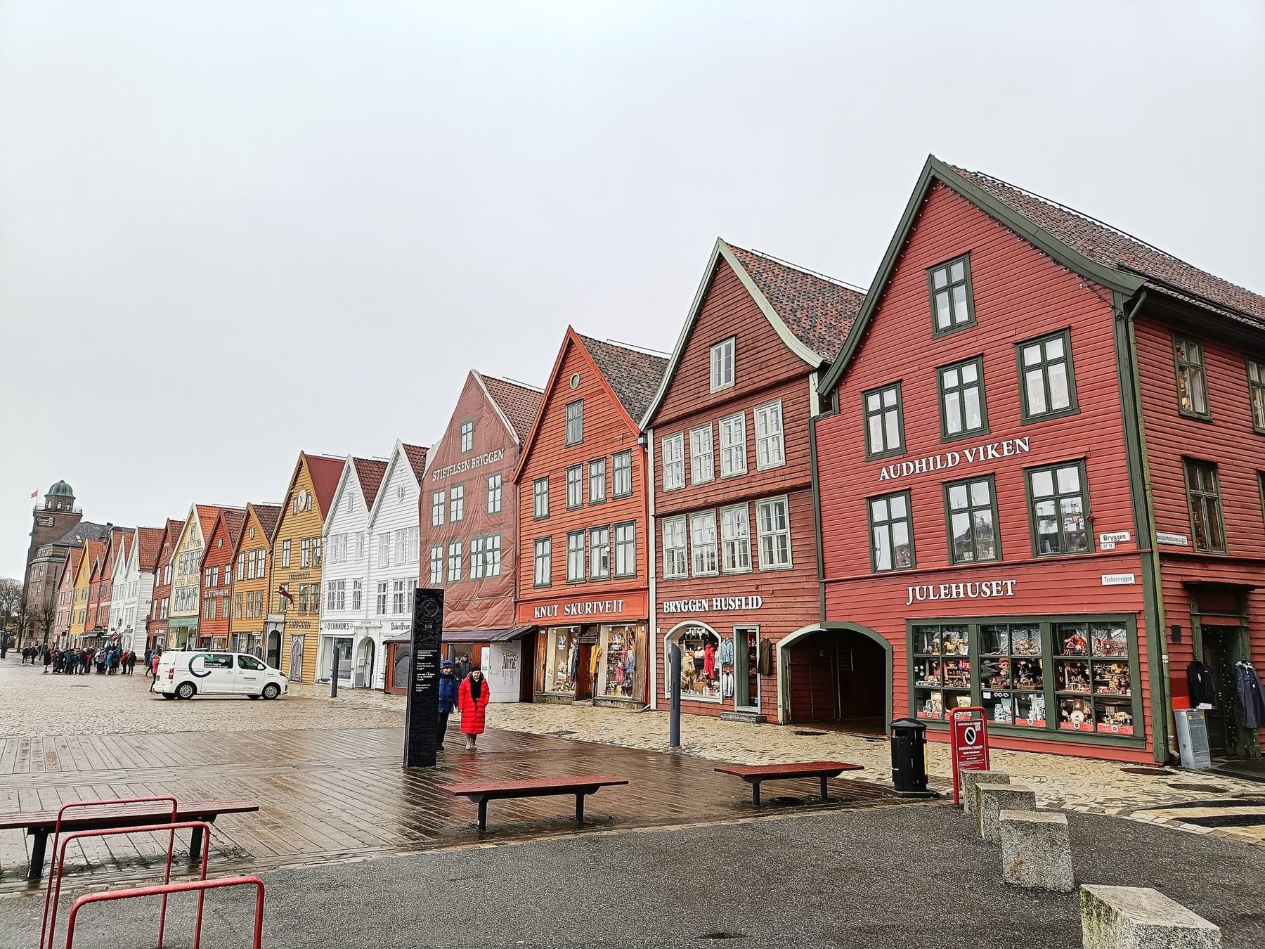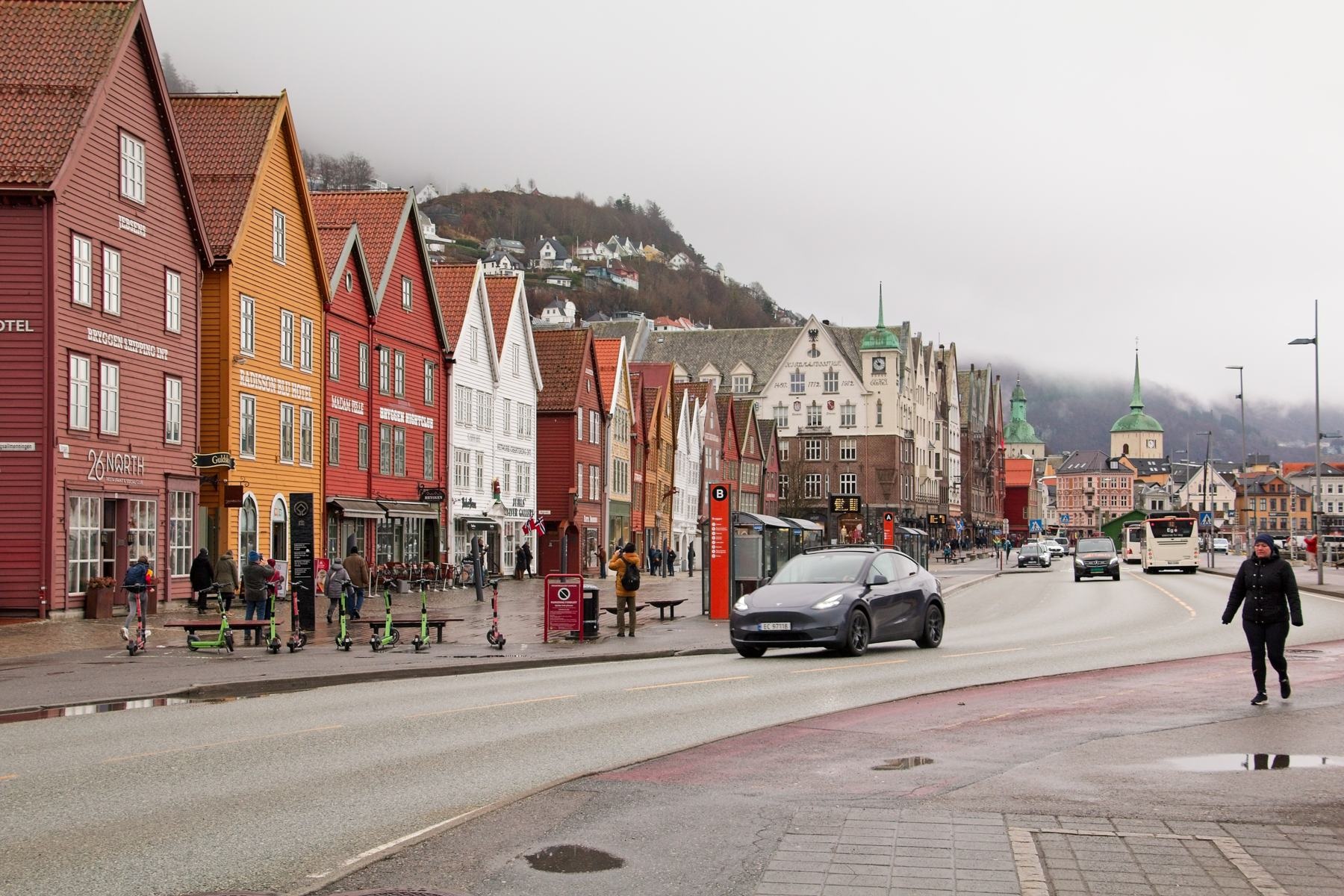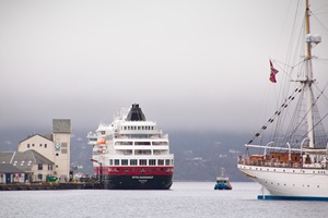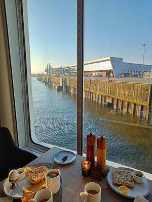 In Bergen angekommen, machten wir uns früh auf den Weg, um die Stadt zu erkunden. Die Floyenbahn brachte uns auf den Berg, aber der Nebel raubte uns die Aussicht. Beim Spaziergang durch die Speicherhäuser und das Stadtzentrum war das Wetter leicht regnerisch, was aber keine große Rolle spielte. Da wir schon mehrmals auf die defekte Kabinenlüftung hingewiesen hatten und wir nicht die einzigen waren, wurde das Problem nach der Ausfahrt von Bergen endlich behoben. Auch die gute Kaffeemaschine funktionierte wieder.