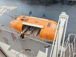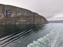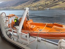 An diesem Tag regnete es in Olden ohne Unterlass. Wir entschieden uns, nicht mit der Seilbahn zu fahren da der Berg im Nebel lag. In unserer Kabine fiel die Lüftung aus, was sehr unangenehm war. Beim Ablegen fand eine Rettungsbootübung statt, die wir vom Zimmer aus beobachteten.